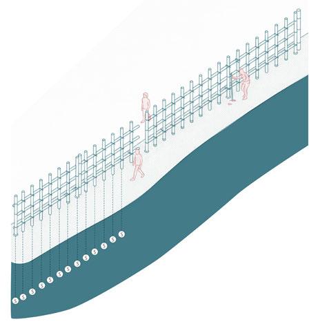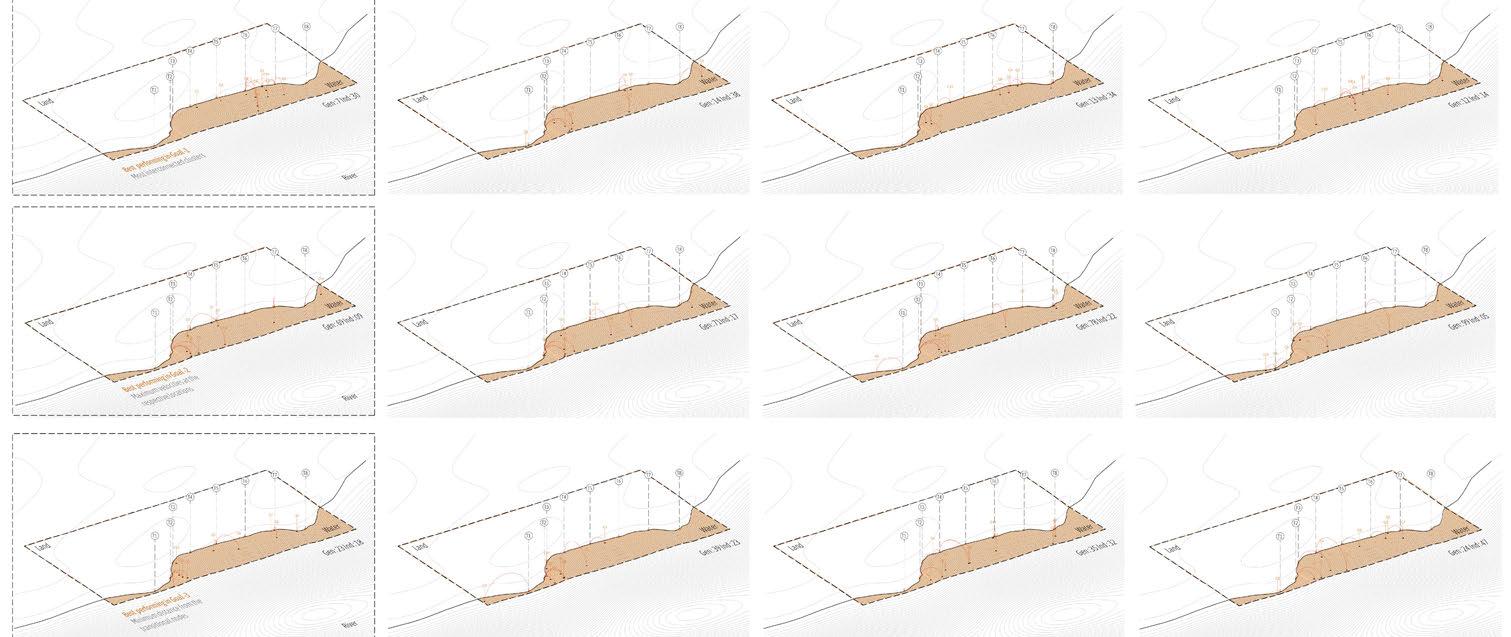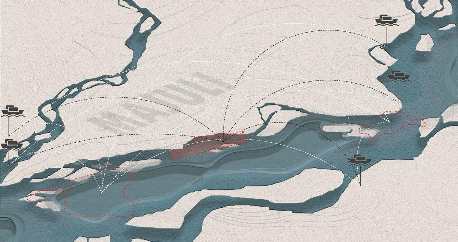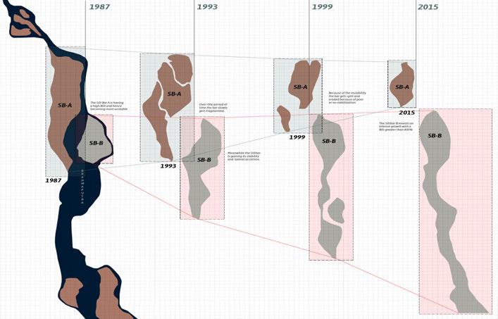 This dissertation proposes a strategic built environment composed of a stiltbased housing network designed to guide river sedimentation over time. By enabling the formation of artificial sand bars, this approach aims to support permanent housing and sustain local livelihoods through stabilized land for economic activities. By integrating architecture with land, water, and people, the project offers a spatial strategy that moves in rhythm with the river Brahmaputra, fostering resilience and continuity in the face of ecological uncertainty.