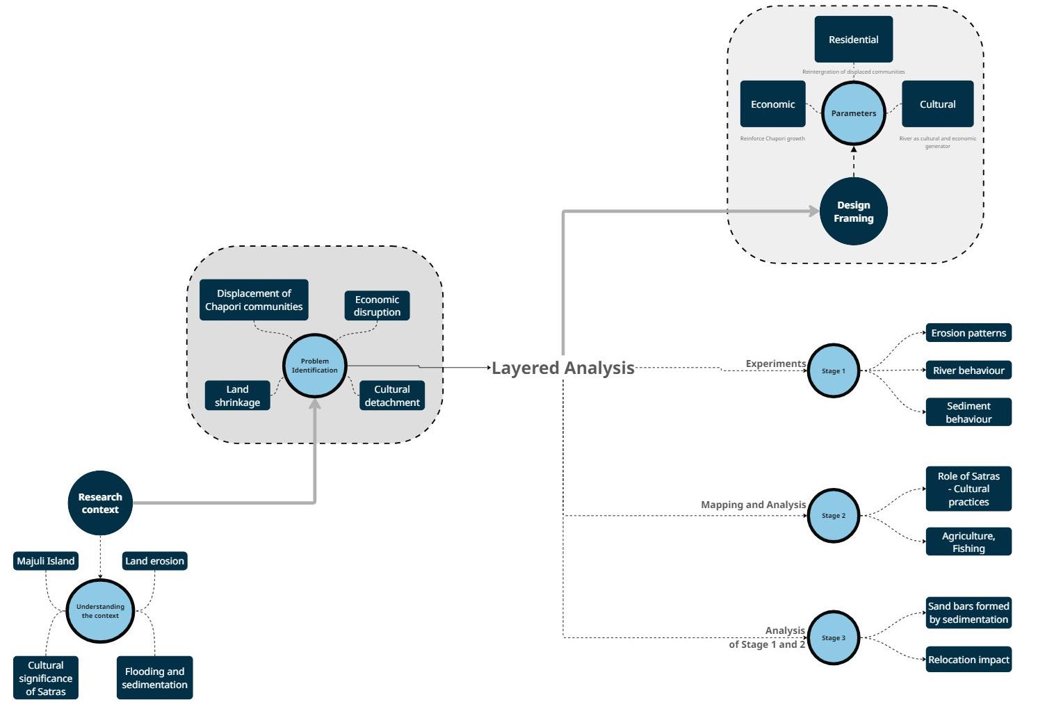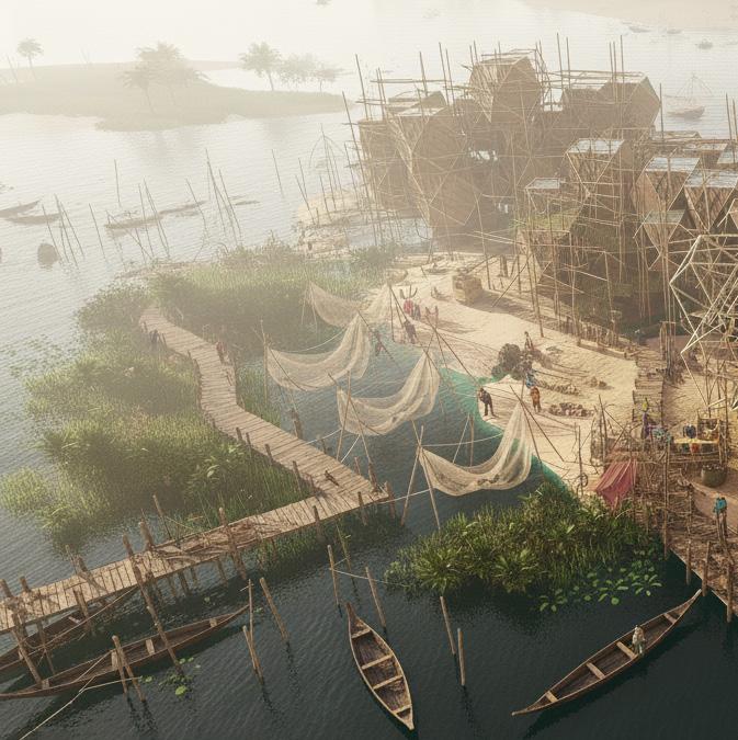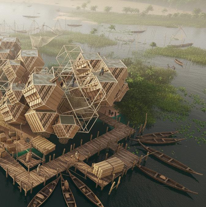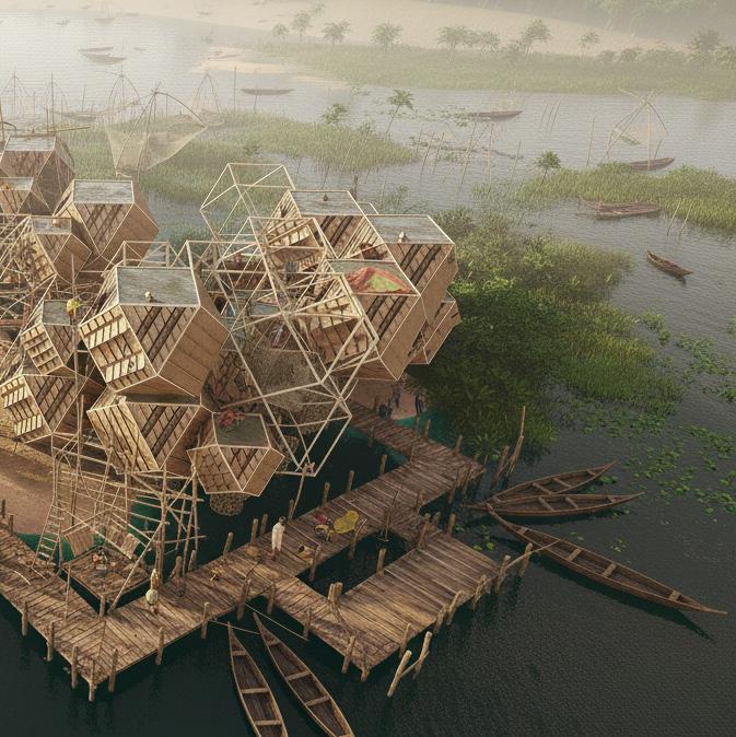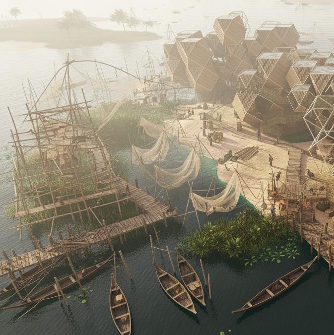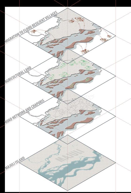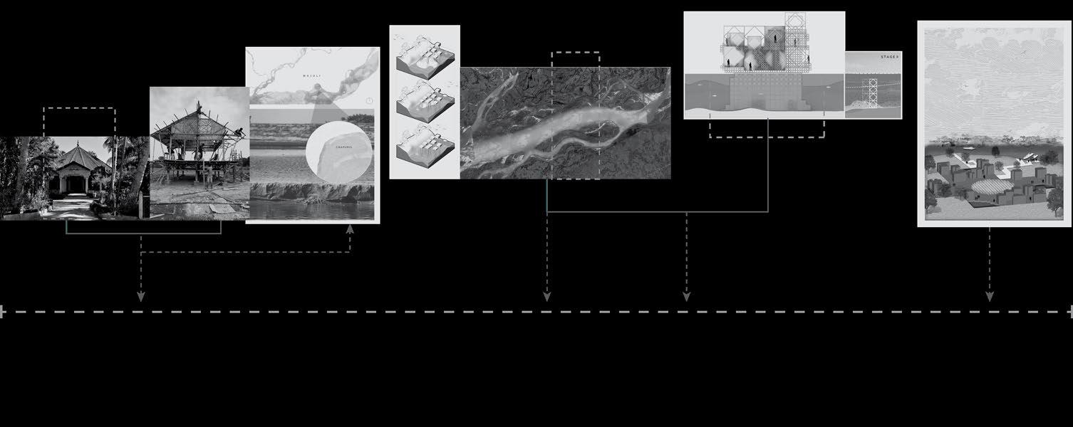 Therefore, the dissertation proposes an interdependent design framework where architecture is conceived not as an object, but as a process, one that co-evolves with the changing terrain, cultural rituals, and economic cycles of the island. Built form and landscape are no longer viewed as separate, but as part of a living system that moves in rhythm with the Brahmaputra.