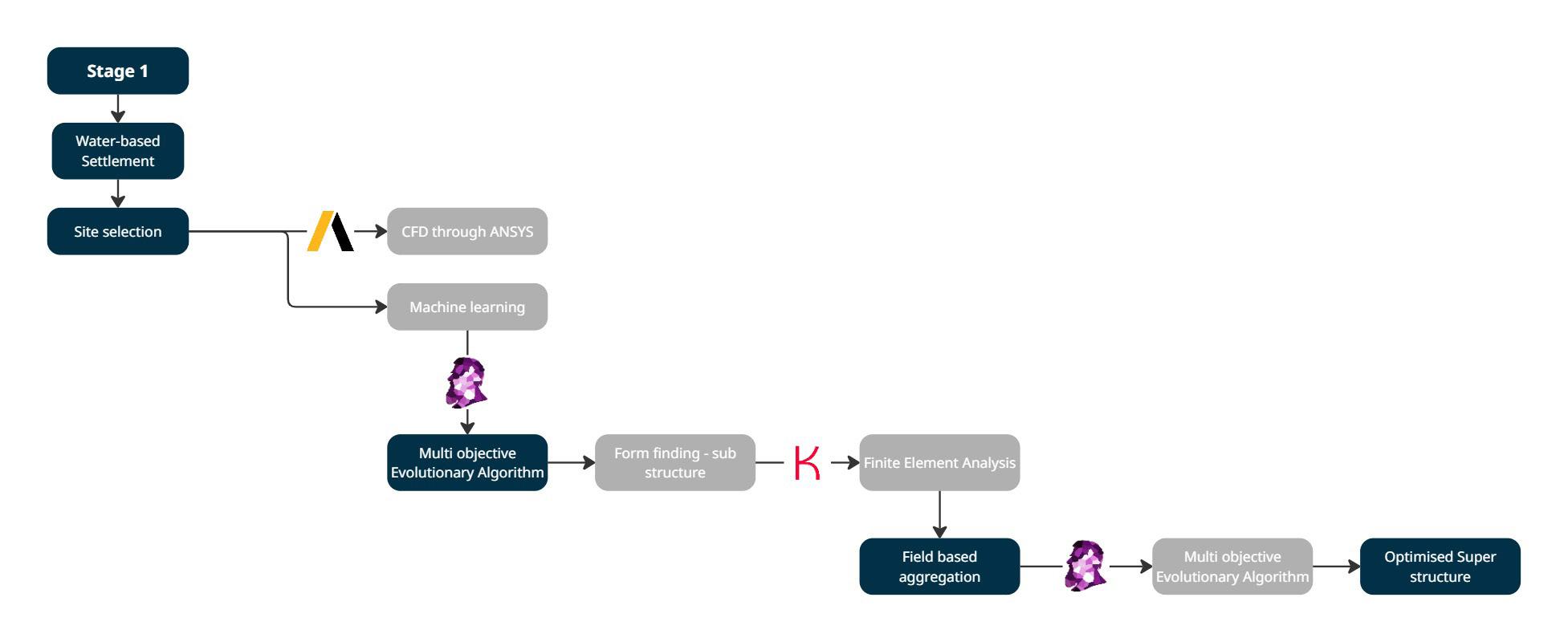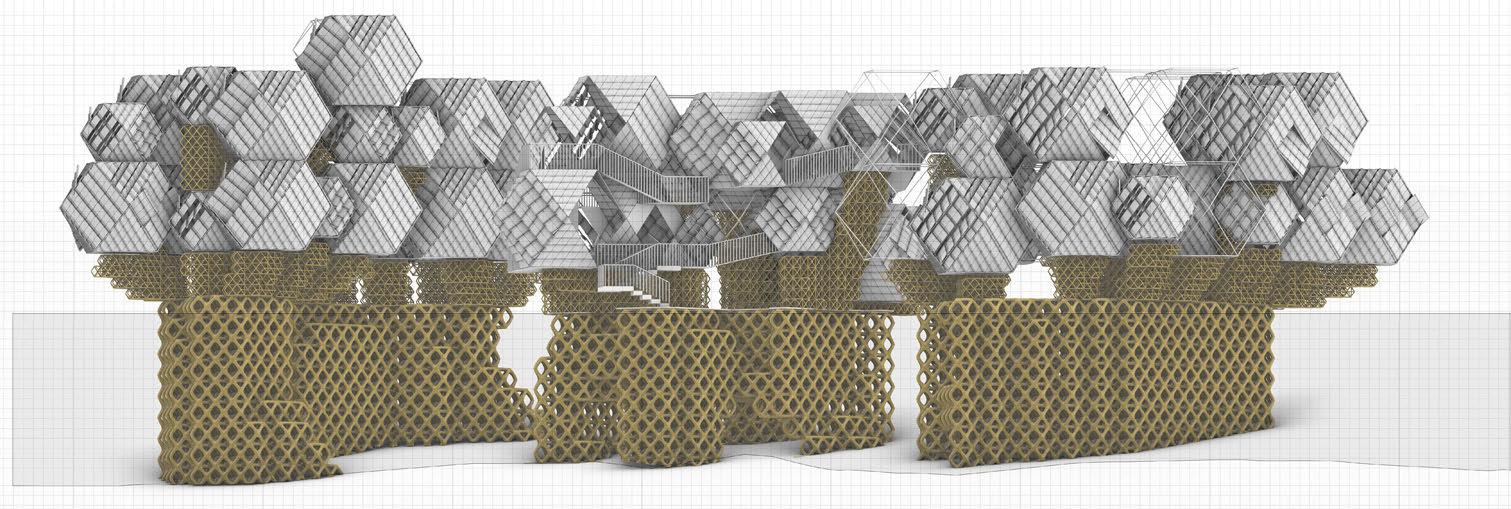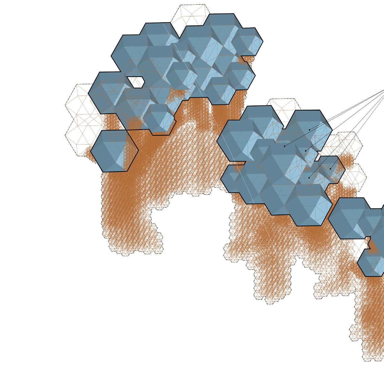 • Lattice Framework Development: Sub-structure infill logic for modular sediment catchment structures (evaluated for local assemblability)
