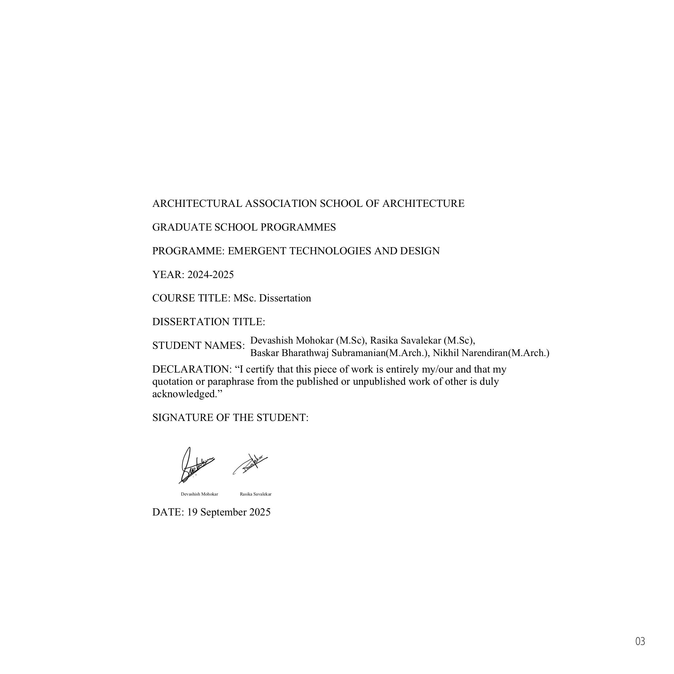 I would also like to acknowledge the support and academic resources provided by the AA School of Architecture, which created the foundation for this project and enabled us to carry out this research with rigor and clarity.