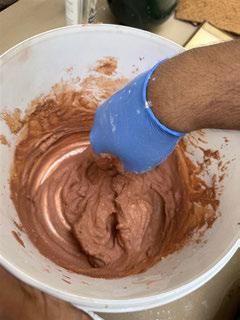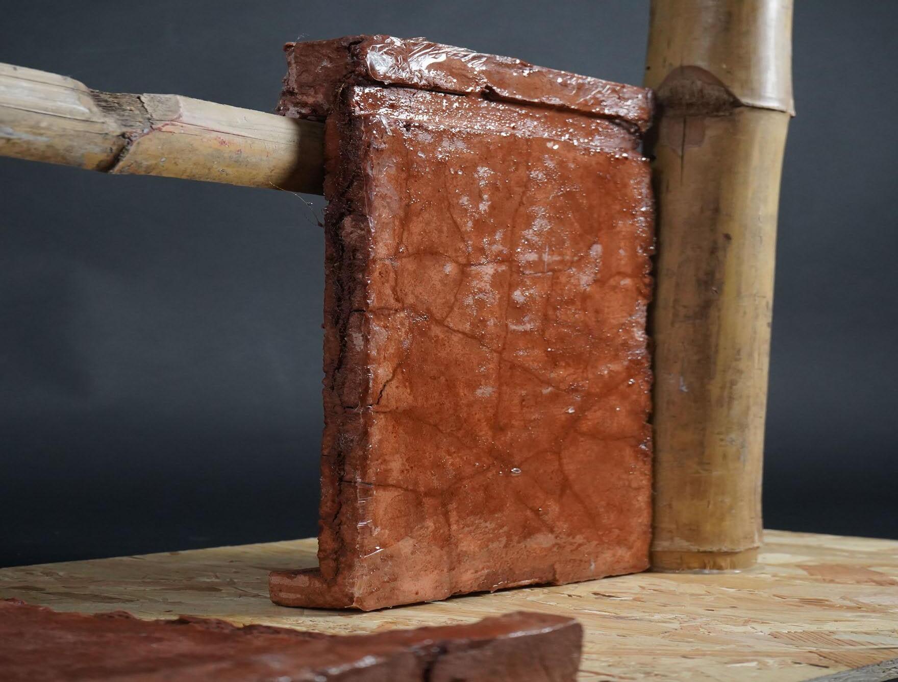 Each prototype combined different ratios of china clay, red clay, sand, iron oxide, and water with binders such as resin, lime slurry, or xanthan, alongside natural fibers (coir, jute, bamboo mat) or modifiers. The comparative trials enabled evaluation of which material mixes could achieve structural stability, ease of fabrication, and resilience in wet conditions, informing further refinement.
