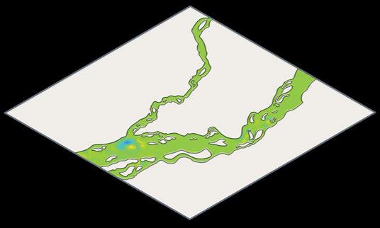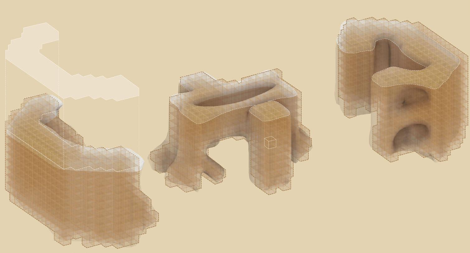 The third topologically optimised grometry demonstrated the most balanced performance, establishing a consistent wake region where sediment accumulated uniformly and without notable downstream erosion. This form represented the most effective synergy between structural optimization and ecological function, making it the chosen basis for further development of the superstructure.