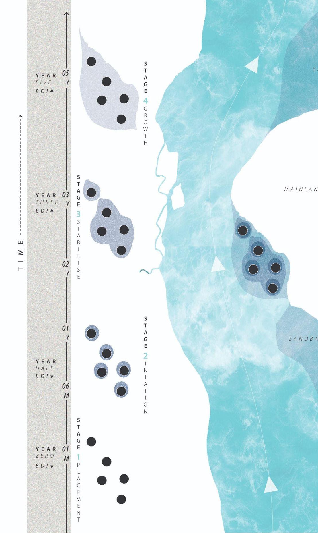 In response, this dissertation proposes an interdependent design framework that redefines the built environment not as a static object, but as an evolving process, one that generates new landmass and gradually consolidates it into habitable territory.. It aims to place human aspects at the centre of design, while looking to its environmental context as a means to address and resolve the challenges faced by human settlements. This research addresses the global challenge of preventing the built environment from dominating nature, questioning whether it can instead help mitigate environmental degradation.
