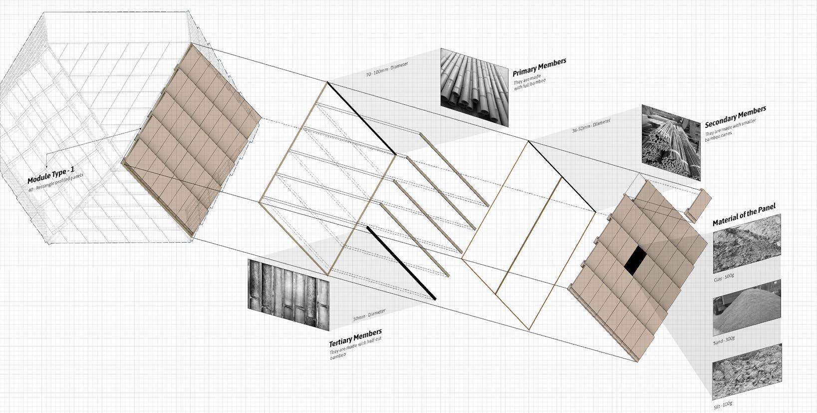 - Resin-based panels (Resin–Coir Structural, Bamboo Flex Resin, Resin–Lime Jute), which integrated synthetic resin with natural fibers and clay to enhance tensile performance and durability.