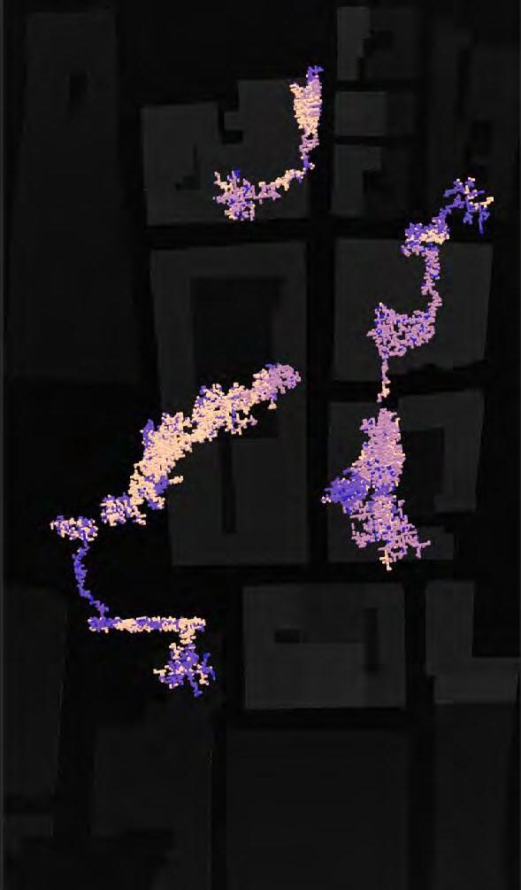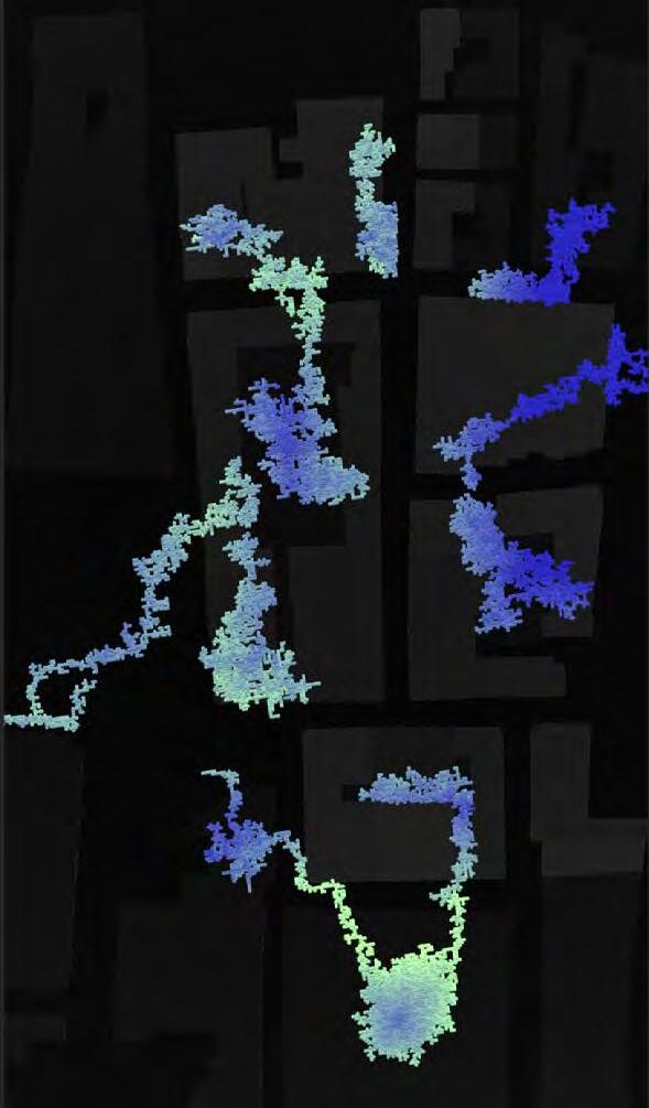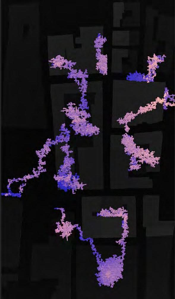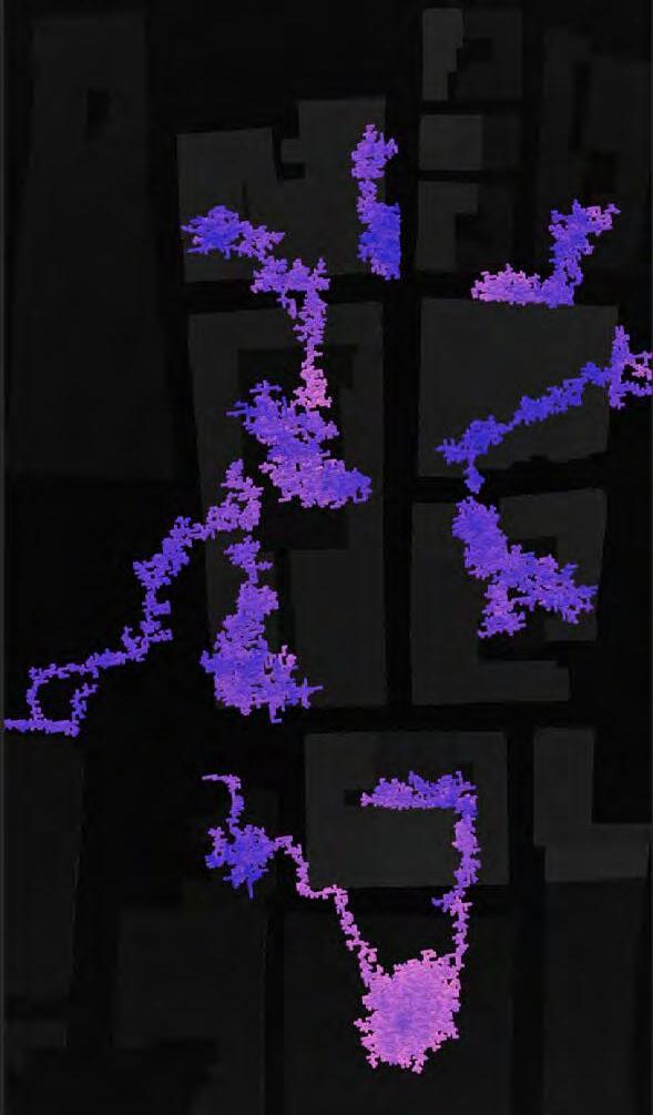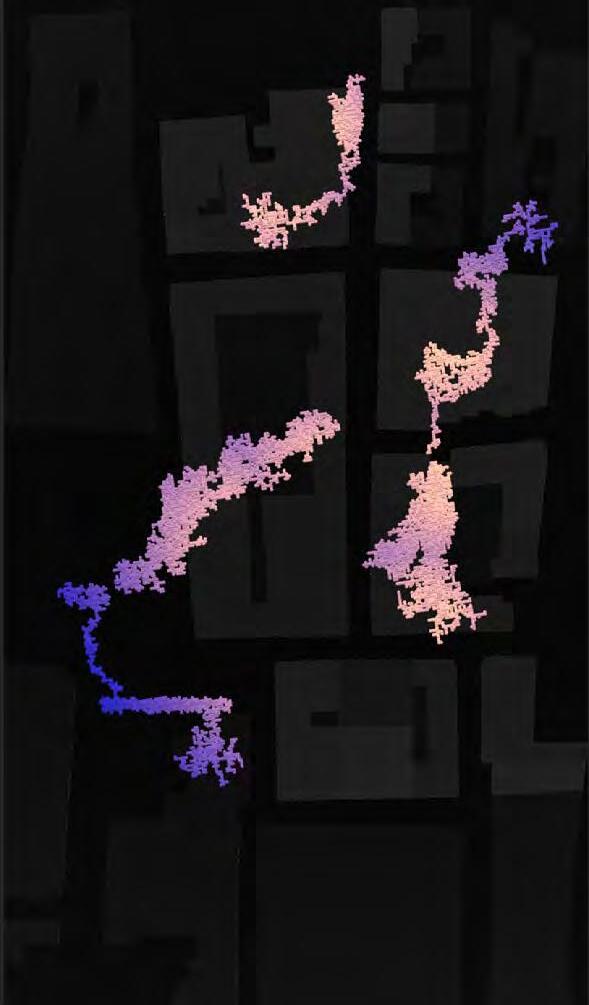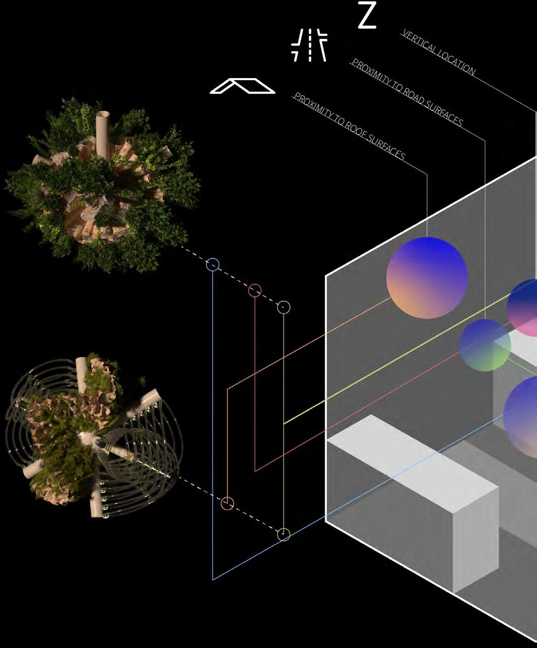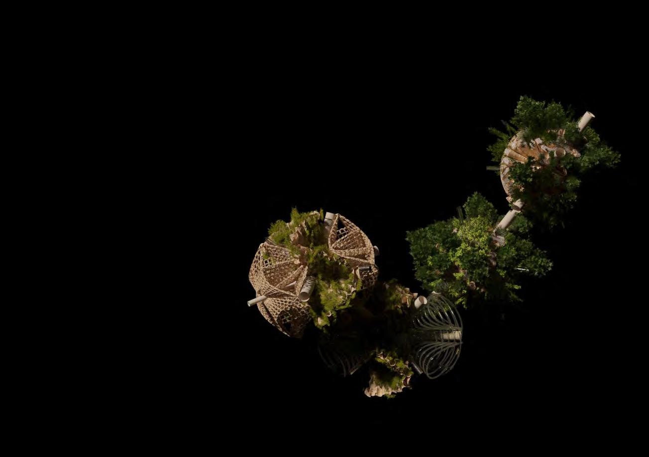 Ultimately, in proposing a modular network system which infiltrates urban space, there is an inherent implication affecting the temporality of human occupancy. The level of ‘partnering’ needed for the maintenance of the network raises questions of whether privatisation or commodification should depend on proximity to the nearest commercial function? Or can participatory relationships be shared between all humans because the modules purify space for all occupants. While remaining open-ended, it raises an important larger point; is every new generation ethically responsible to clean up the messes of previous generations? And if that is to be true, can the accumulation of generational pollution be actively solved through this modulation? The project should improve the environment directly for human occupancy such that the project becomes more receptive for people rather than pedestrian nuisance. In this way, humans establish a connection to the modules and cannot foresee a future in which (at the most basic level) public spaces are no longer thermoregulated. In slight, the more beneficial a new system poses to humans, the more likely it is that an ethos of care-taking can be conditioned in people as a new learnt behaviour- especially because it is obvious there is no pathos in rising climate changes. Therefore, as the levels of pollution rise, it is possible that the methodologies of the project would need to be reevaluated, quantities of modules would need to drastically increased, bio-materials would possibly need to be entirely reconsidered as well as the spatial implications of waiting too long: elegiac silent forests and empty seas.122