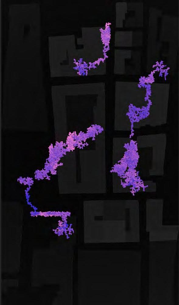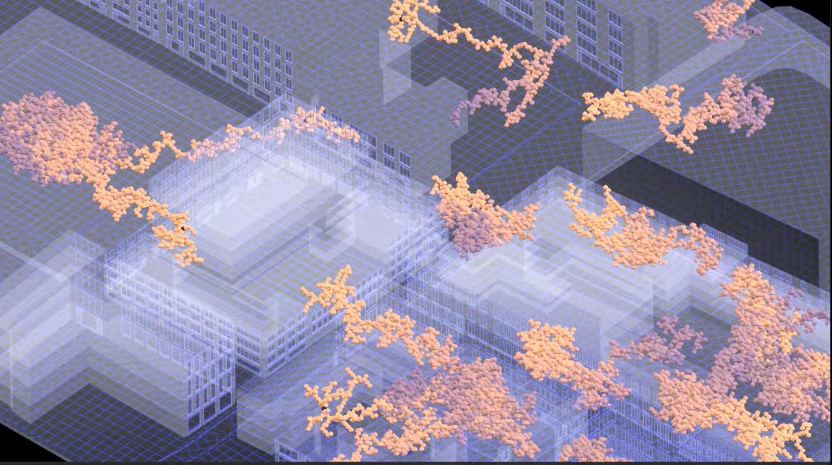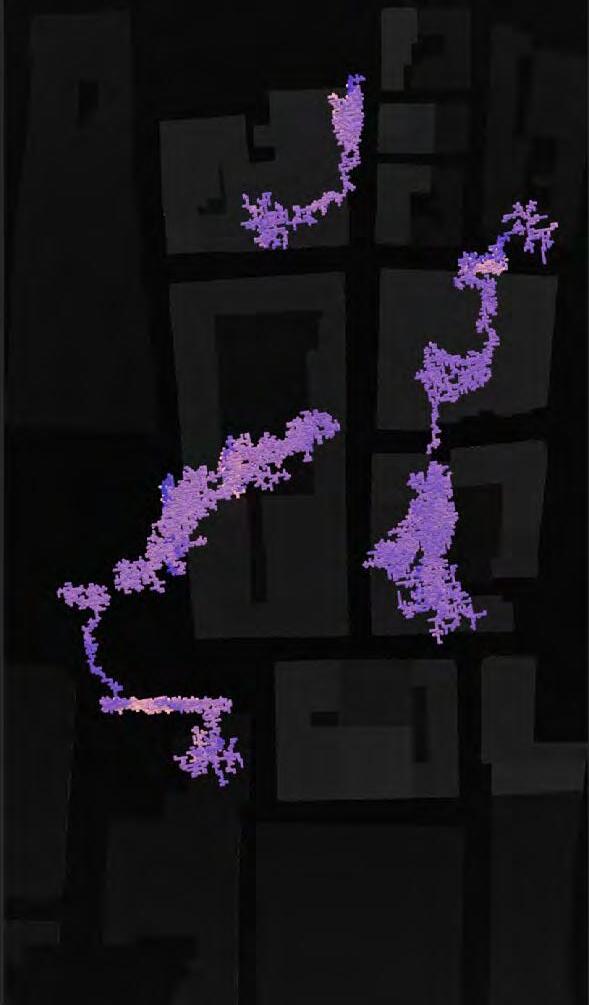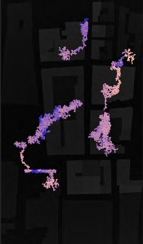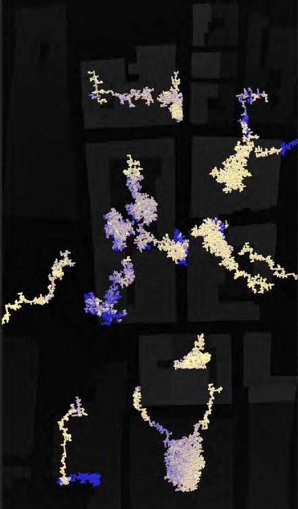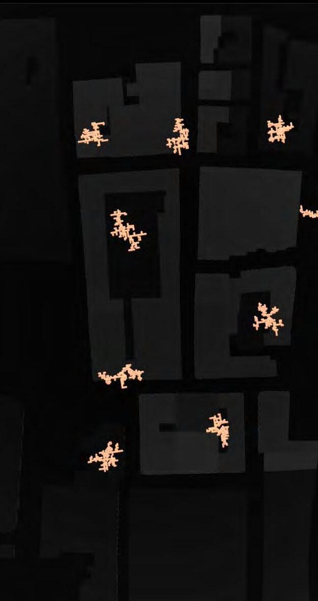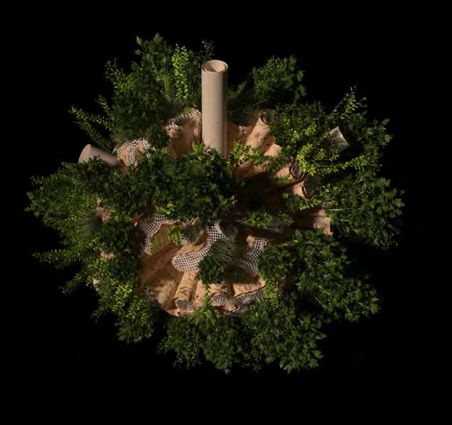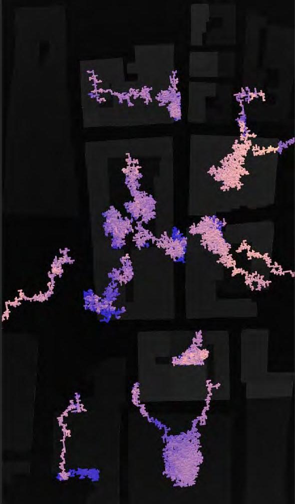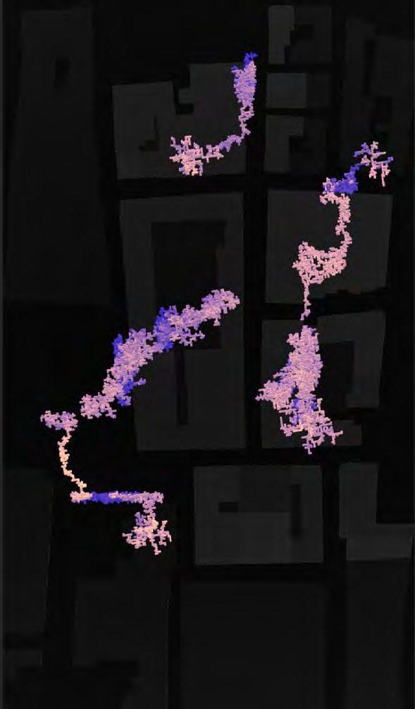Ultimately, in proposing a modular network system which infiltrates urban space, there is an inherent implication affecting the temporality of human occupancy. The level of ‘partnering’ needed for the maintenance of the network raises questions of whether privatisation or commodification should depend on proximity to the nearest commercial function? Or can participatory relationships be shared between all humans because the modules purify space for all occupants. While remaining open-ended, it raises an important larger point; is every new generation ethically responsible to clean up the messes of previous generations? And if that is to be true, can the accumulation of generational pollution be actively solved through this modulation? The project should improve the environment directly for human occupancy such that the project becomes more receptive for people rather than pedestrian nuisance. In this way, humans establish a connection to the modules and cannot foresee a future in which (at the most basic level) public spaces are no longer thermoregulated. In slight, the more beneficial a new system poses to humans, the more likely it is that an ethos of care-taking can be conditioned in people as a new learnt behaviour- especially because it is obvious there is no pathos in rising climate changes. Therefore, as the levels of pollution rise, it is possible that the methodologies of the project would need to be reevaluated, quantities of modules would need to drastically increased, bio-materials would possibly need to be entirely reconsidered as well as the spatial implications of waiting too long: elegiac silent forests and empty seas.122