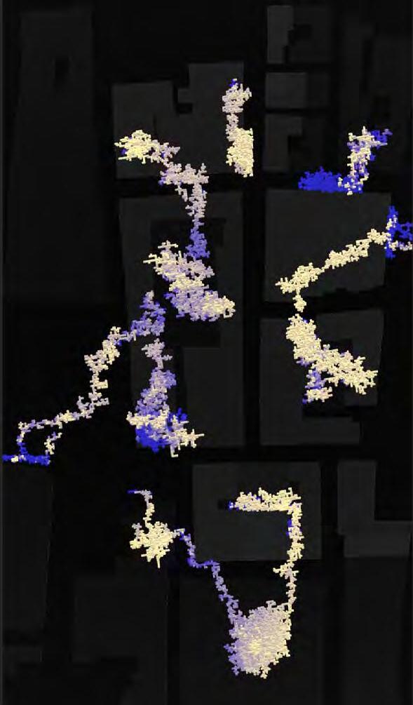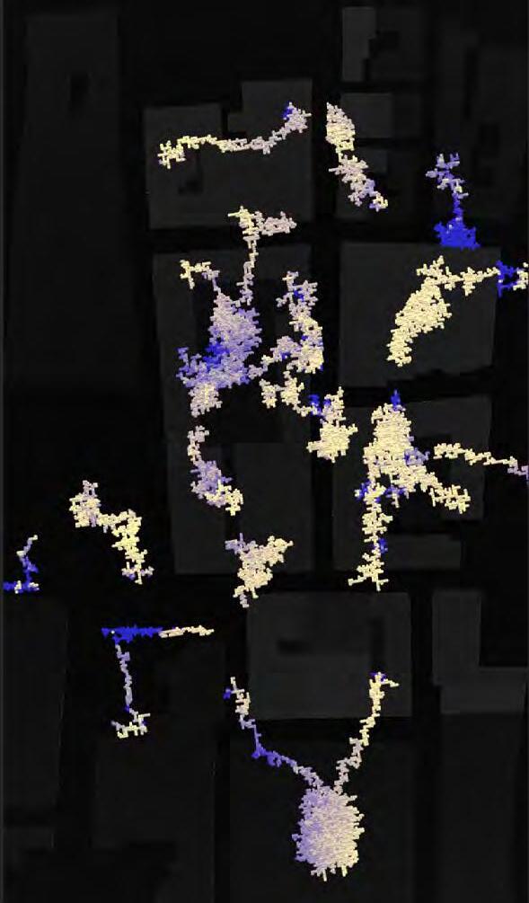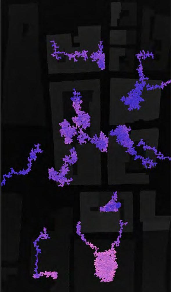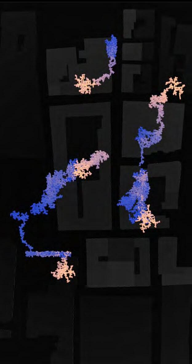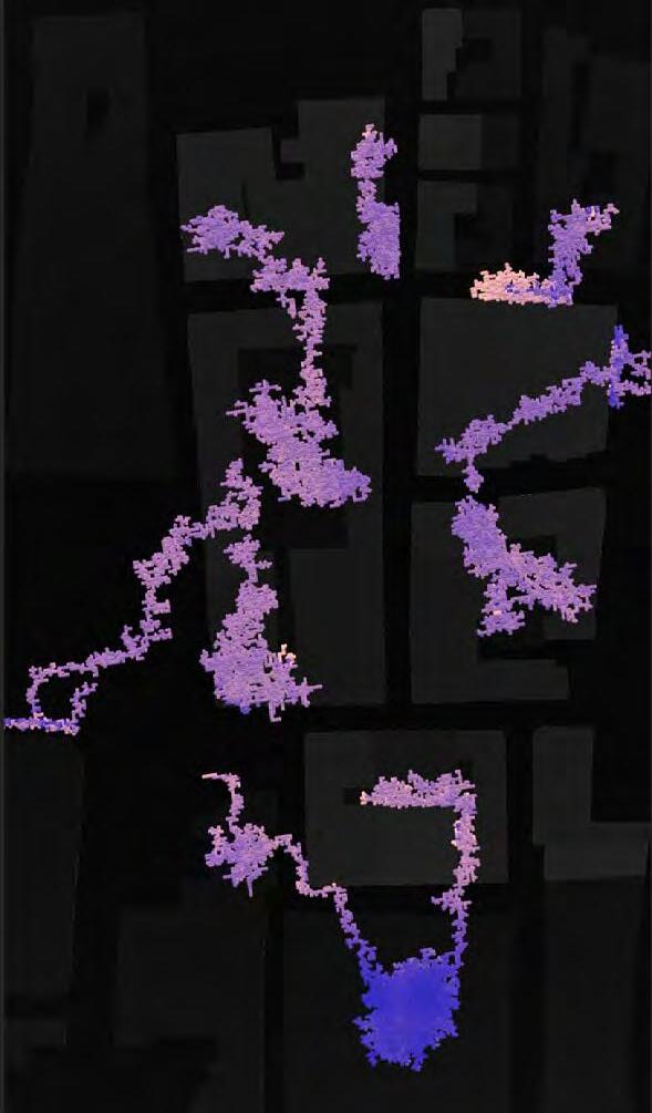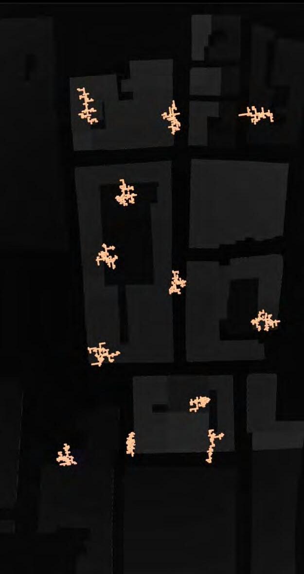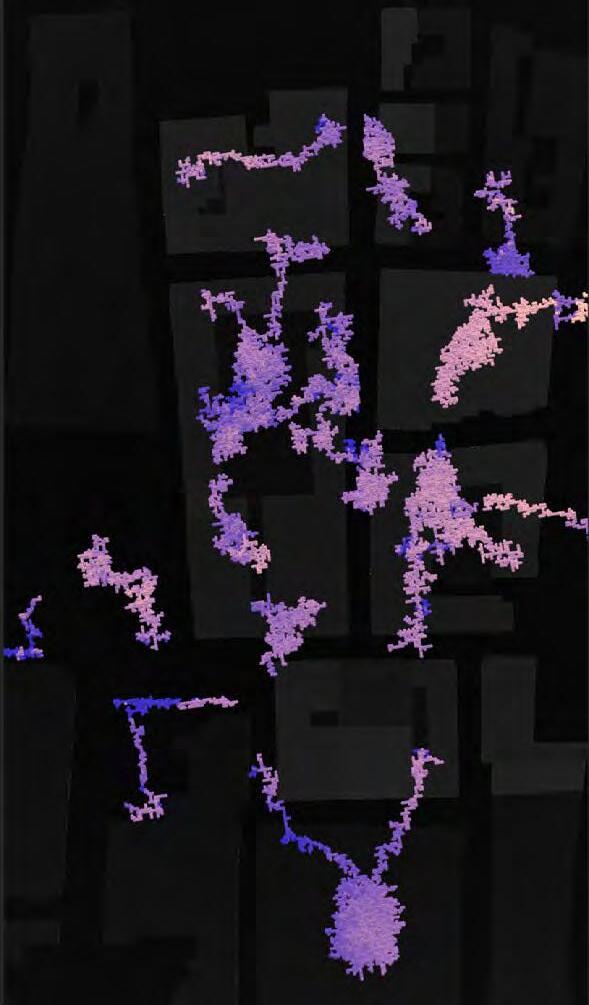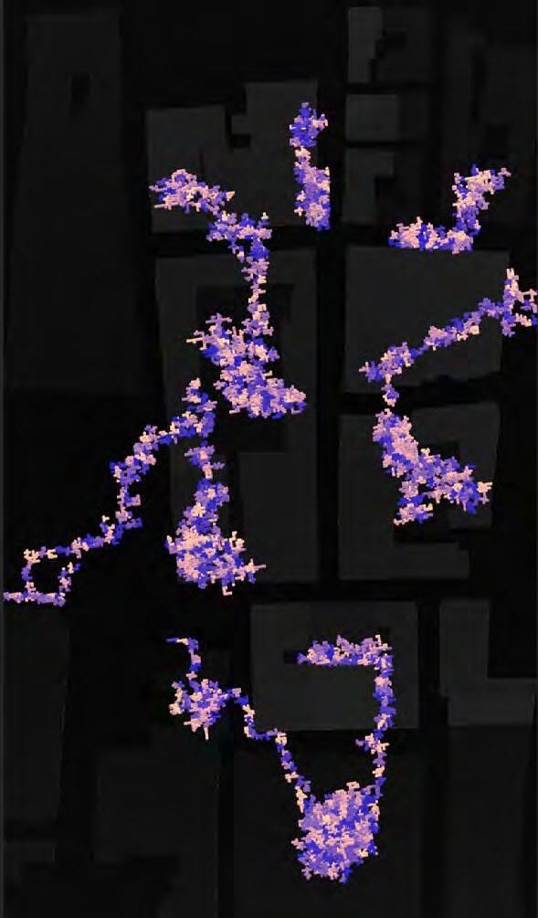 Ultimately, in proposing a modular network system which infiltrates urban space, there is an inherent implication affecting the temporality of human occupancy. The level of ‘partnering’ needed for the maintenance of the network raises questions of whether privatisation or commodification should depend on proximity to the nearest commercial function? Or can participatory relationships be shared between all humans because the modules purify space for all occupants. While remaining open-ended, it raises an important larger point; is every new generation ethically responsible to clean up the messes of previous generations? And if that is to be true, can the accumulation of generational pollution be actively solved through this modulation? The project should improve the environment directly for human occupancy such that the project becomes more receptive for people rather than pedestrian nuisance. In this way, humans establish a connection to the modules and cannot foresee a future in which (at the most basic level) public spaces are no longer thermoregulated. In slight, the more beneficial a new system poses to humans, the more likely it is that an ethos of care-taking can be conditioned in people as a new learnt behaviour- especially because it is obvious there is no pathos in rising climate changes. Therefore, as the levels of pollution rise, it is possible that the methodologies of the project would need to be reevaluated, quantities of modules would need to drastically increased, bio-materials would possibly need to be entirely reconsidered as well as the spatial implications of waiting too long: elegiac silent forests and empty seas.122