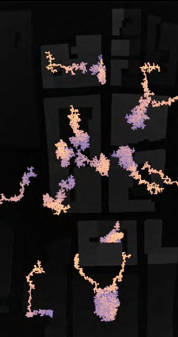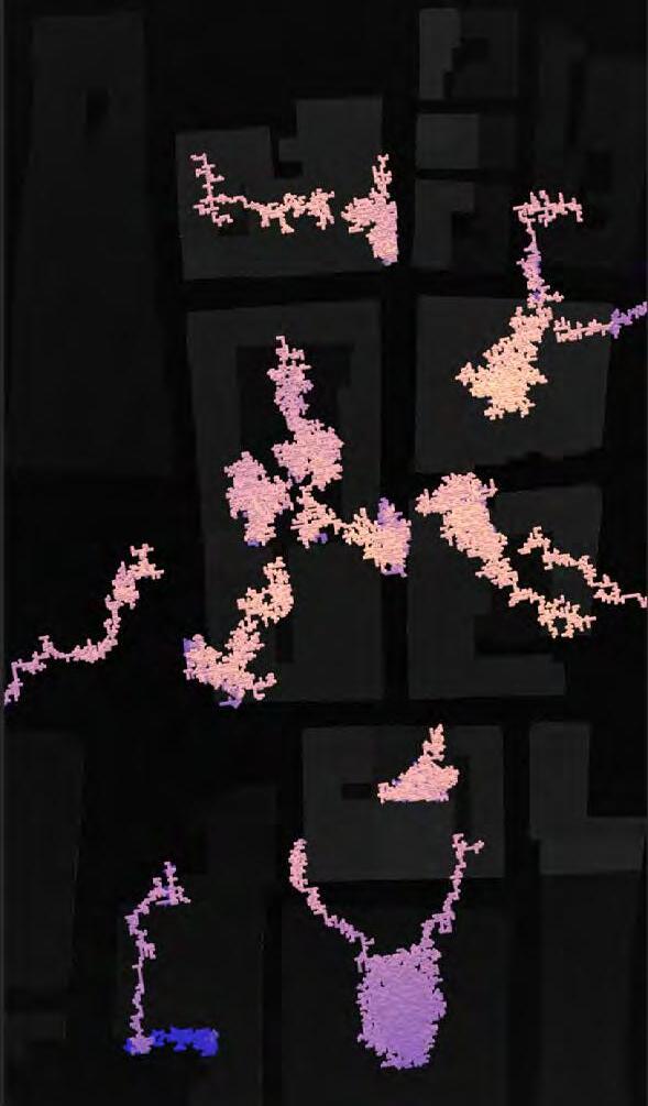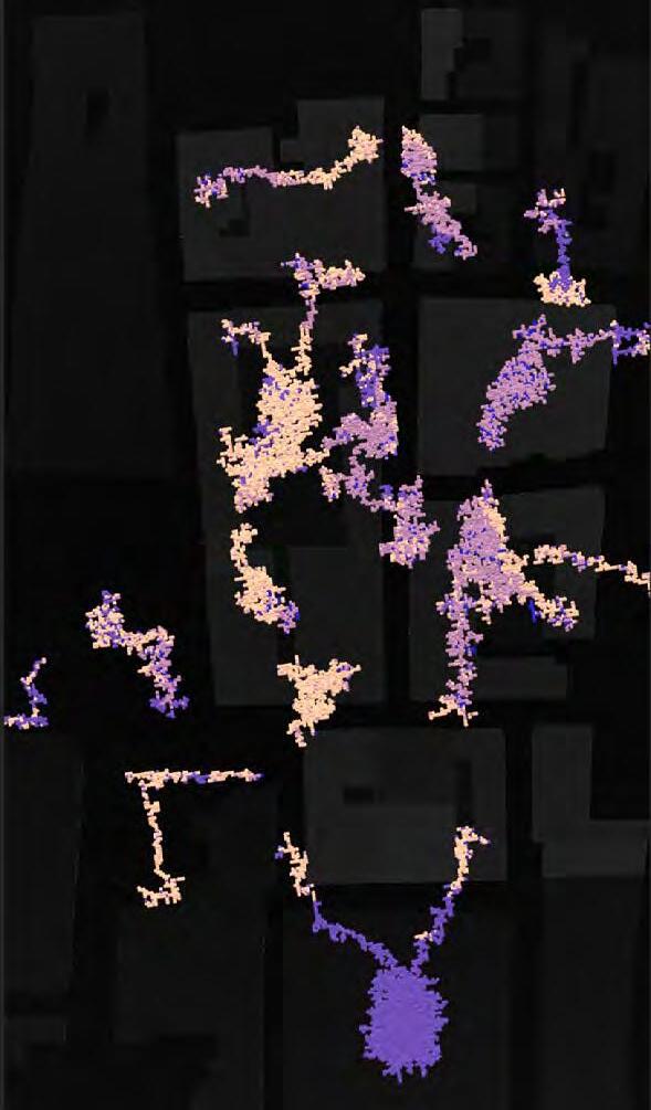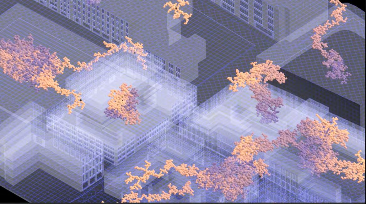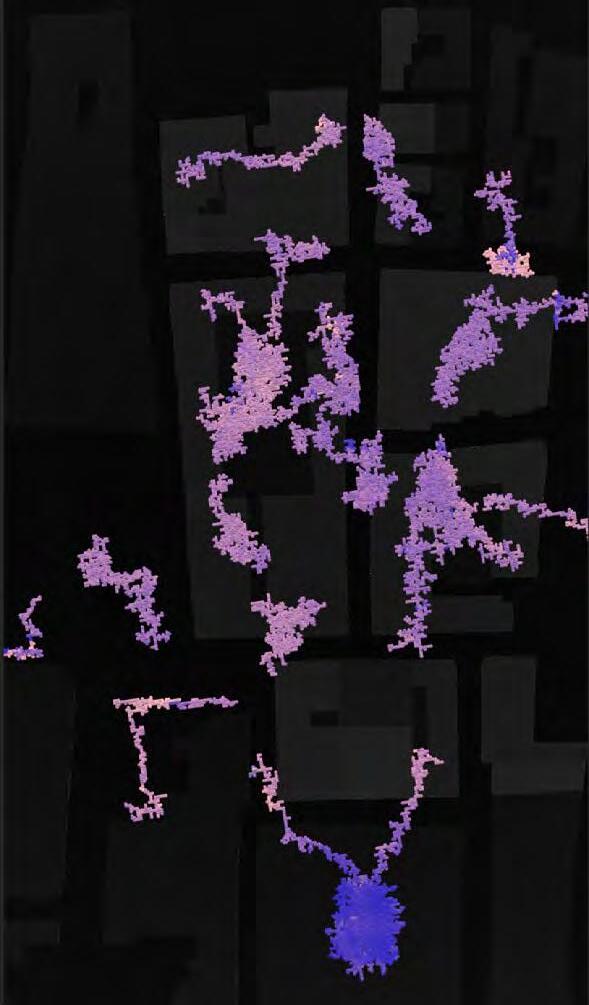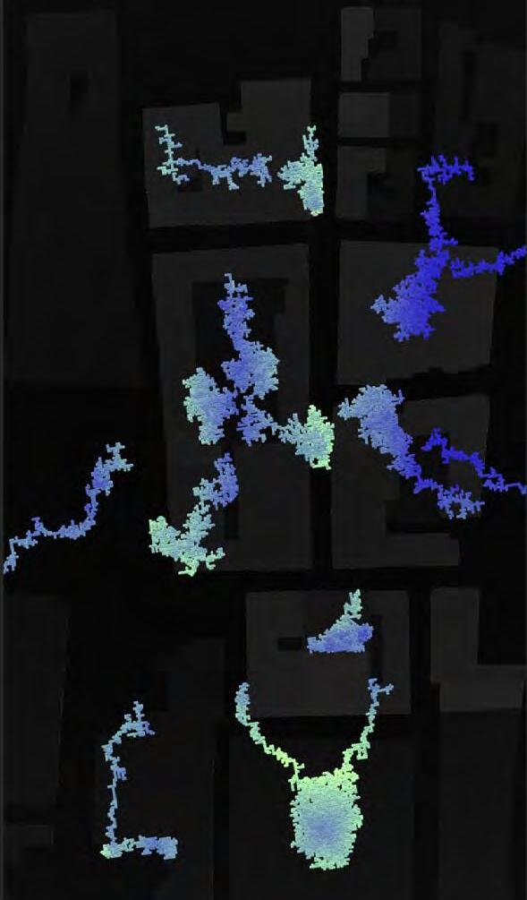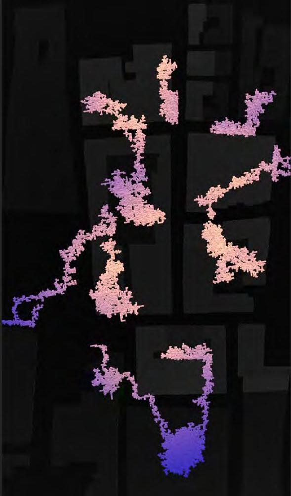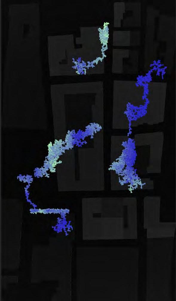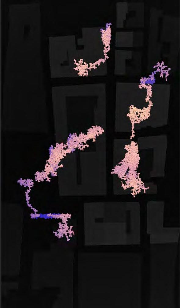 Ultimately, in proposing a modular network system which infiltrates urban space, there is an inherent implication affecting the temporality of human occupancy. The level of ‘partnering’ needed for the maintenance of the network raises questions of whether privatisation or commodification should depend on proximity to the nearest commercial function? Or can participatory relationships be shared between all humans because the modules purify space for all occupants. While remaining open-ended, it raises an important larger point; is every new generation ethically responsible to clean up the messes of previous generations? And if that is to be true, can the accumulation of generational pollution be actively solved through this modulation? The project should improve the environment directly for human occupancy such that the project becomes more receptive for people rather than pedestrian nuisance. In this way, humans establish a connection to the modules and cannot foresee a future in which (at the most basic level) public spaces are no longer thermoregulated. In slight, the more beneficial a new system poses to humans, the more likely it is that an ethos of care-taking can be conditioned in people as a new learnt behaviour- especially because it is obvious there is no pathos in rising climate changes. Therefore, as the levels of pollution rise, it is possible that the methodologies of the project would need to be reevaluated, quantities of modules would need to drastically increased, bio-materials would possibly need to be entirely reconsidered as well as the spatial implications of waiting too long: elegiac silent forests and empty seas.122