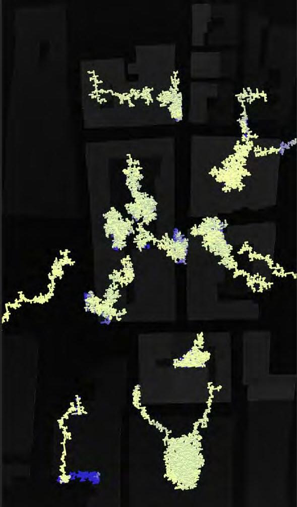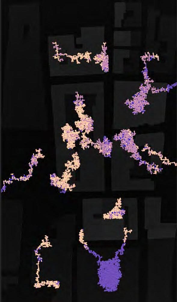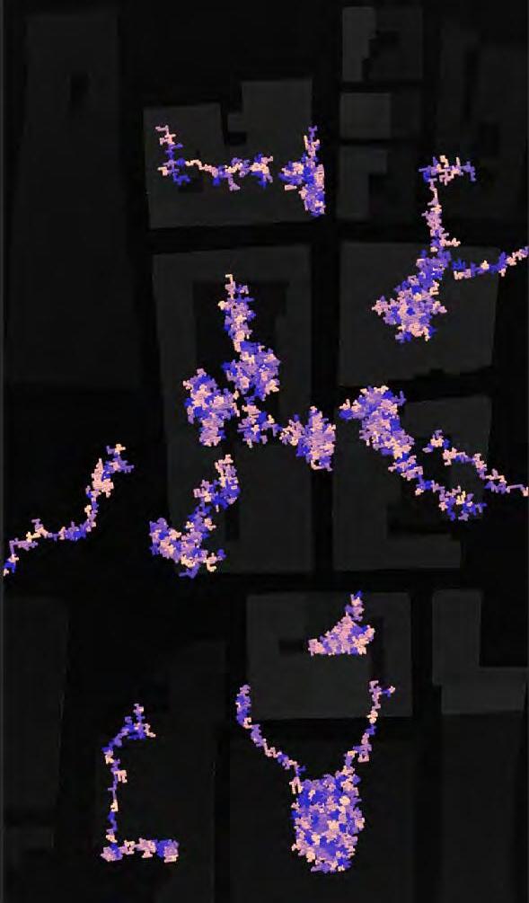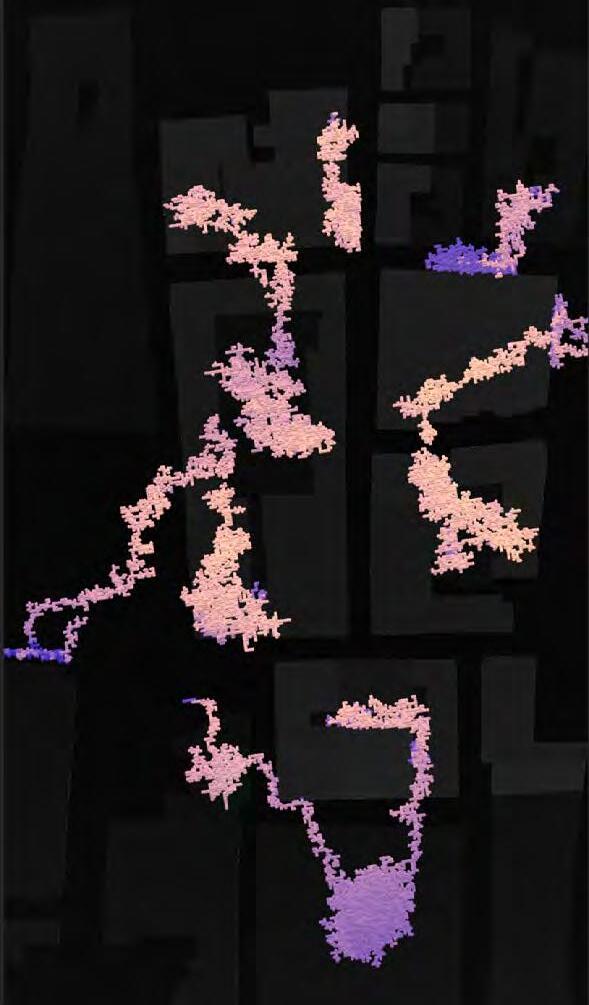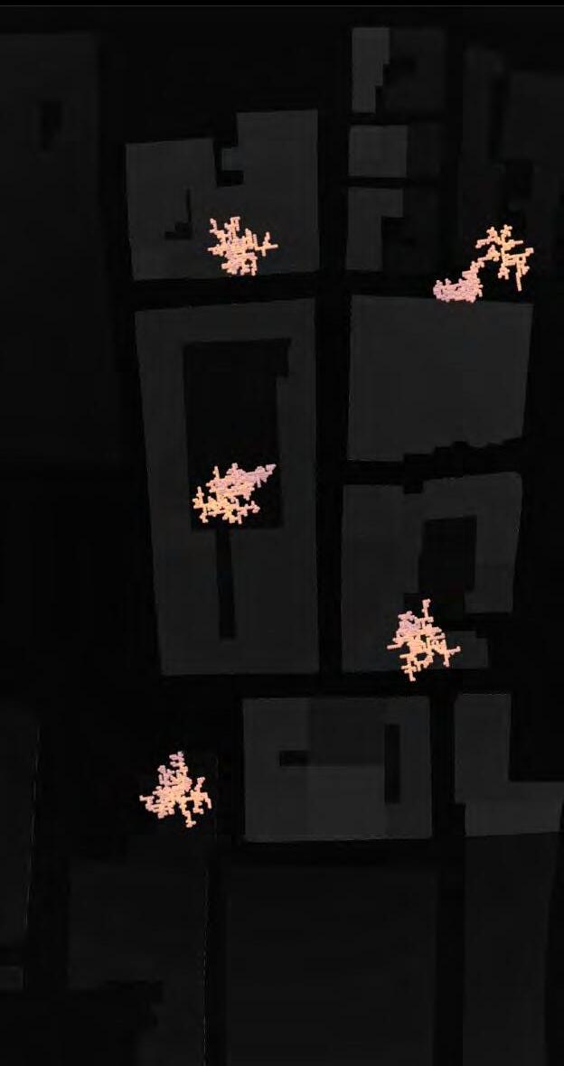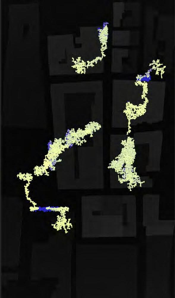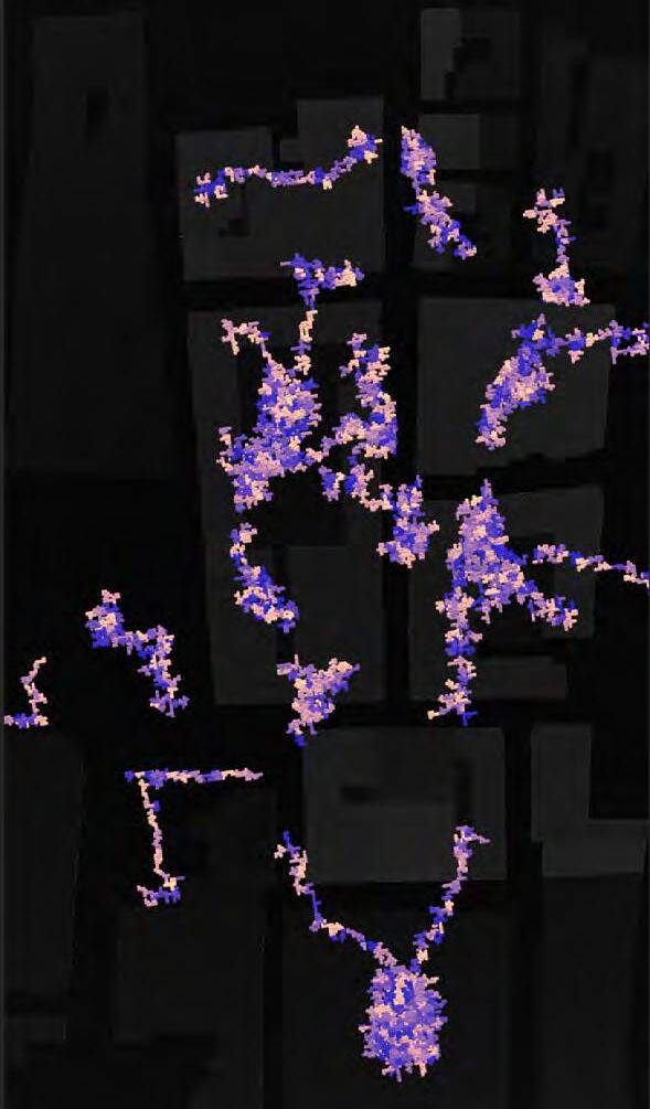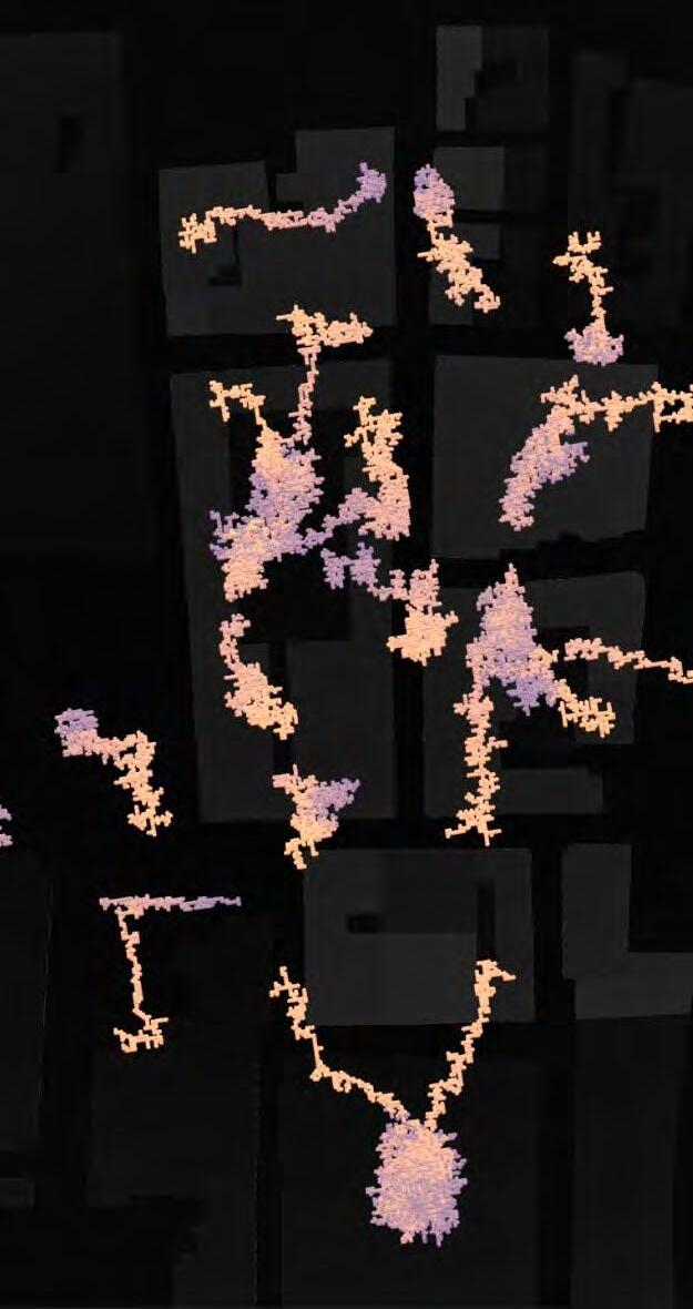 Ultimately, in proposing a modular network system which infiltrates urban space, there is an inherent implication affecting the temporality of human occupancy. The level of ‘partnering’ needed for the maintenance of the network raises questions of whether privatisation or commodification should depend on proximity to the nearest commercial function? Or can participatory relationships be shared between all humans because the modules purify space for all occupants. While remaining open-ended, it raises an important larger point; is every new generation ethically responsible to clean up the messes of previous generations? And if that is to be true, can the accumulation of generational pollution be actively solved through this modulation? The project should improve the environment directly for human occupancy such that the project becomes more receptive for people rather than pedestrian nuisance. In this way, humans establish a connection to the modules and cannot foresee a future in which (at the most basic level) public spaces are no longer thermoregulated. In slight, the more beneficial a new system poses to humans, the more likely it is that an ethos of care-taking can be conditioned in people as a new learnt behaviour- especially because it is obvious there is no pathos in rising climate changes. Therefore, as the levels of pollution rise, it is possible that the methodologies of the project would need to be reevaluated, quantities of modules would need to drastically increased, bio-materials would possibly need to be entirely reconsidered as well as the spatial implications of waiting too long: elegiac silent forests and empty seas.122