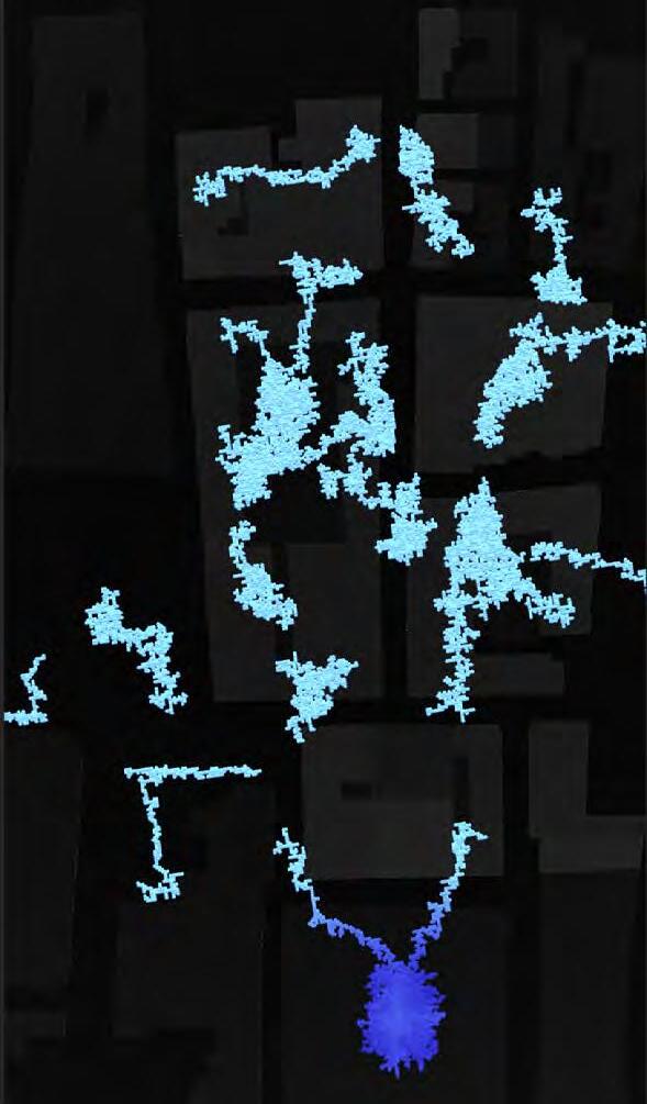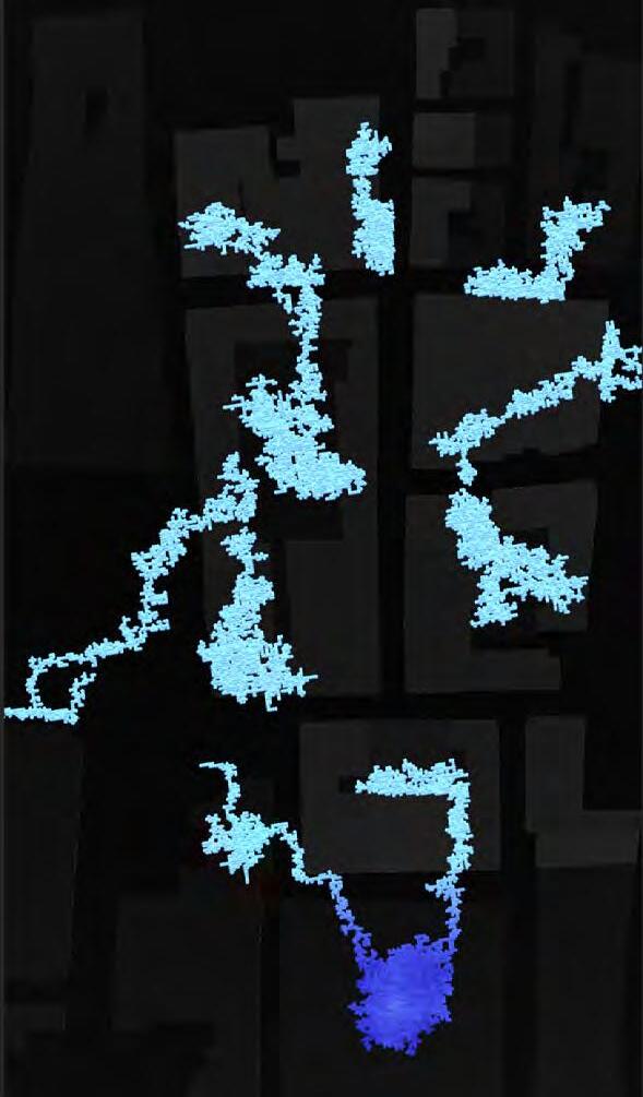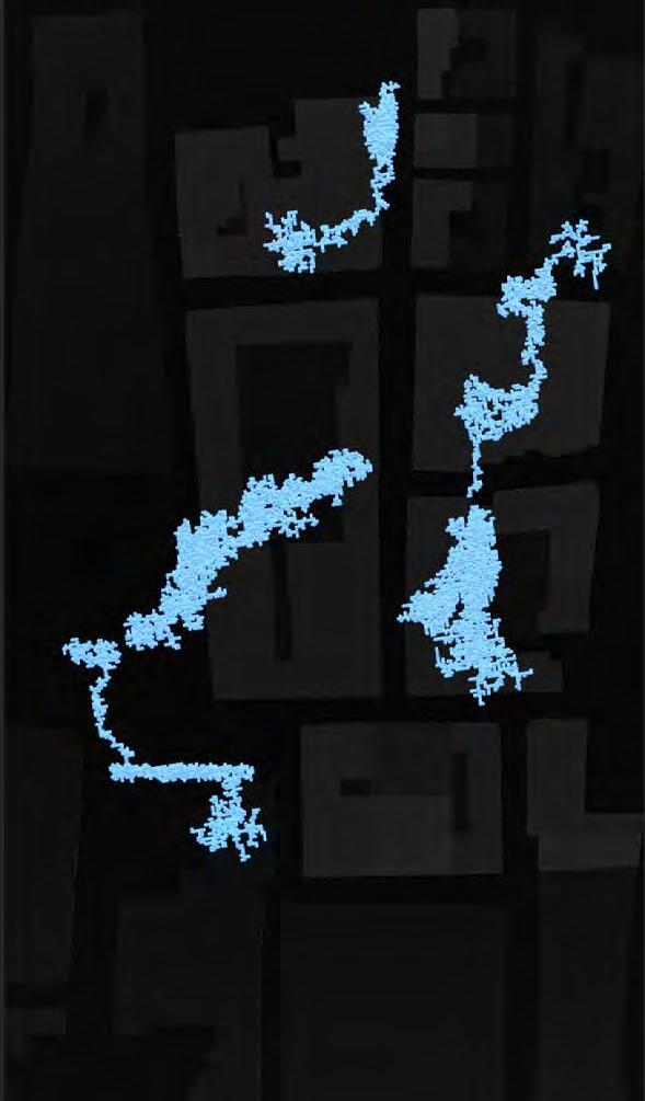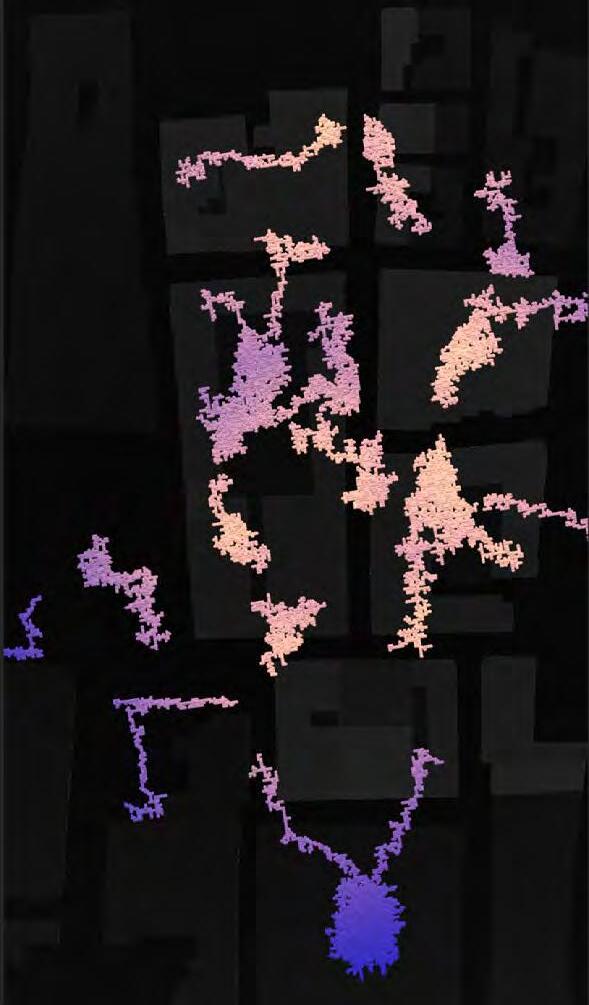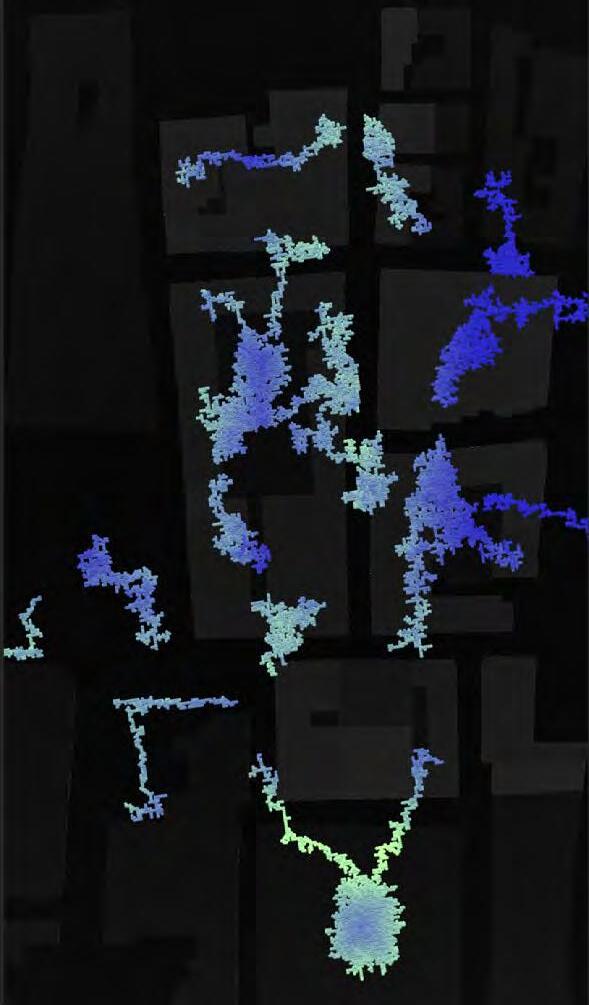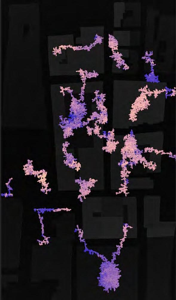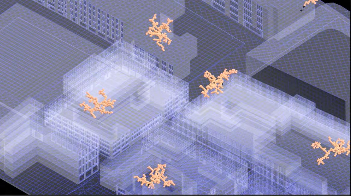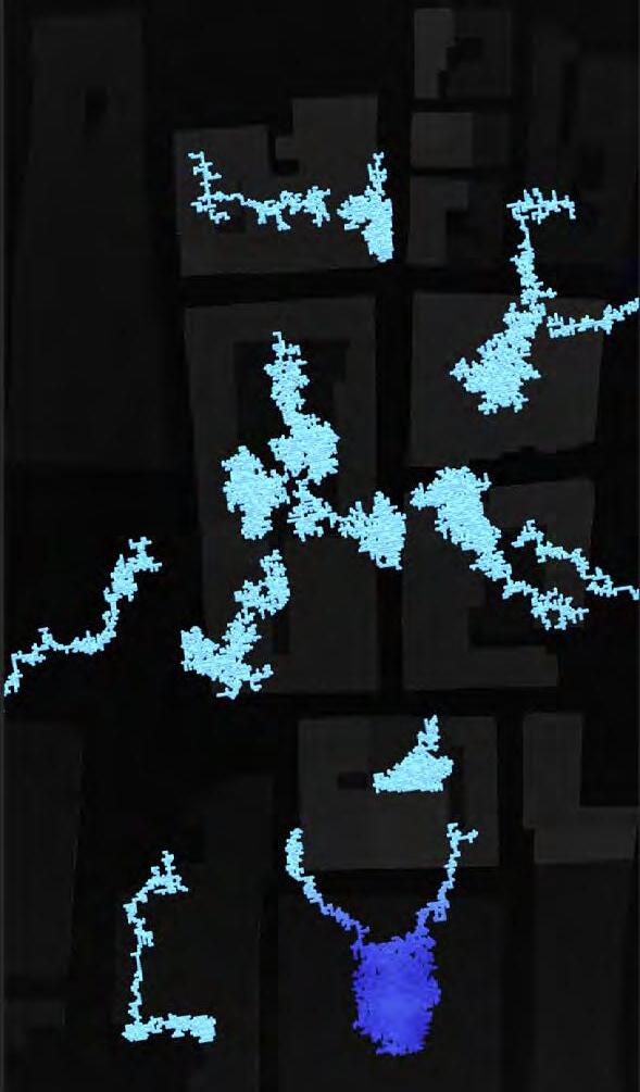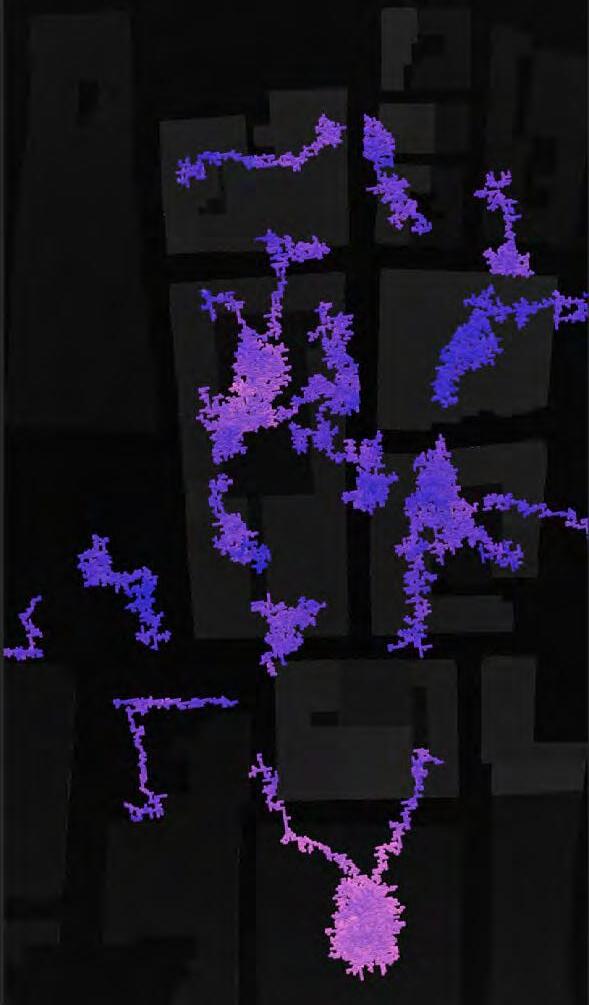 Ultimately, in proposing a modular network system which infiltrates urban space, there is an inherent implication affecting the temporality of human occupancy. The level of ‘partnering’ needed for the maintenance of the network raises questions of whether privatisation or commodification should depend on proximity to the nearest commercial function? Or can participatory relationships be shared between all humans because the modules purify space for all occupants. While remaining open-ended, it raises an important larger point; is every new generation ethically responsible to clean up the messes of previous generations? And if that is to be true, can the accumulation of generational pollution be actively solved through this modulation? The project should improve the environment directly for human occupancy such that the project becomes more receptive for people rather than pedestrian nuisance. In this way, humans establish a connection to the modules and cannot foresee a future in which (at the most basic level) public spaces are no longer thermoregulated. In slight, the more beneficial a new system poses to humans, the more likely it is that an ethos of care-taking can be conditioned in people as a new learnt behaviour- especially because it is obvious there is no pathos in rising climate changes. Therefore, as the levels of pollution rise, it is possible that the methodologies of the project would need to be reevaluated, quantities of modules would need to drastically increased, bio-materials would possibly need to be entirely reconsidered as well as the spatial implications of waiting too long: elegiac silent forests and empty seas.122
