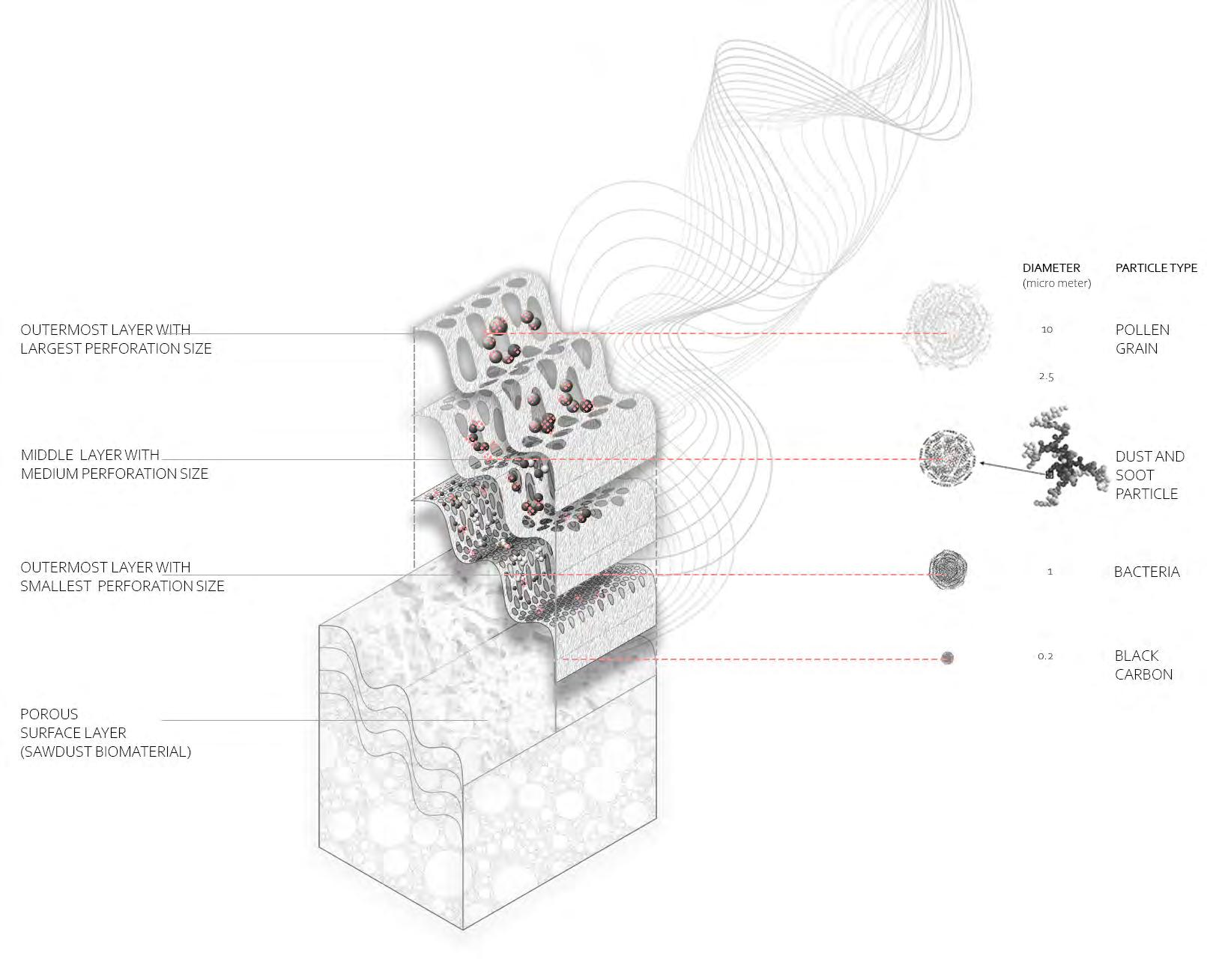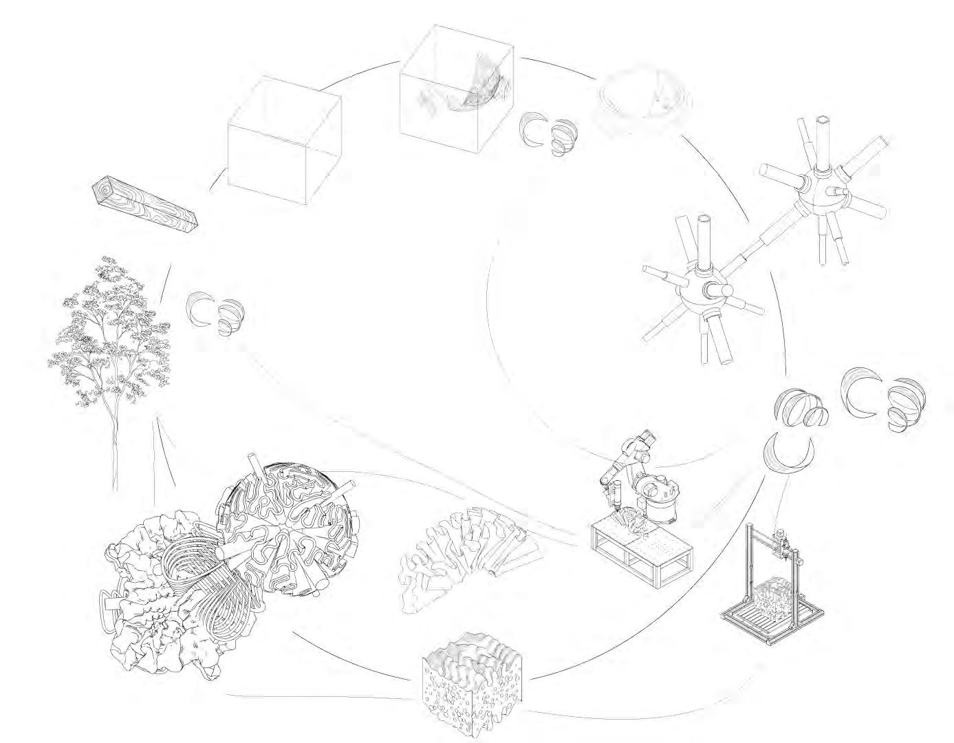 “Fragmentation has the potential to influence pollination dynamics by altering pollinator or plant densities and by altering pollinator behaviour. Decrease in the insect population also acts as an indicator of environmental change and pollution.”20 Taking this into consideration, the need to design a holistic bio-material morphology that can induce a healthy propagation of species back into the cyclical feedback loop would have a compounding effect as habitat, resources and purification work synergistically.