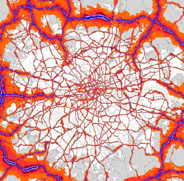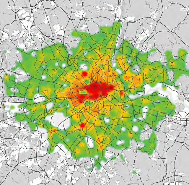 Greater London has lost 53 hectares of tree cover between 2001 and 202112 thus, magnifying fragmentation of landscape in the advent of urbanisation. This decline in spatial physical noise buffers, carbon emissions, reckless synthetic building material usage and overpopulation have increased the urban heat island phenomenon while mean annual city temperatures have increased 10 per cent. Measurable rising pollution levels of NO2, NOx and Particulate Matter foreground London’s Air Quality Index.13