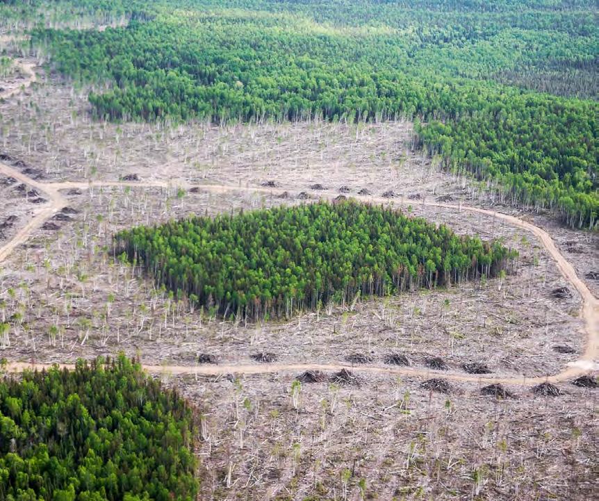 Fig.2. In parts of Ontario’s southern boreal forest, companies have experimented with logging in a variety of special configurations to avoid clearcuts. The forest, which hosts a wide variety of birds and their insect prey, is threatened by fragmentation. 14