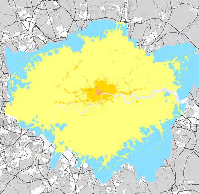 The Metropolitan Green Belt was devised as an urban planning strategy to manage the sprawl of urbanisation during the 19th century as a response to rampant health problems which were arising. These protected areas served as the “green lungs” for the city and additionally became protected areas from urban development.6 However, as of August, 2022 councils in Outer London have approved the development of 19,400 hectares of protected green land.7 Moreover, the number of proposed homes within London’s Green Belt has doubled in the last two years to more than 200,000.8 This infrastructural land take, urban sprawl and economic over development has led to the physical disintegration of continuous ecosystems, habitats and landscape-9 ultimately resulting in the compounding effect on the extinction of existing plants and living species. While today, “health issues are no longer the primary argument for preserving the Green Belt, rather, its benefits in promoting sustainable or environmentally friendly development are foregrounded (...)”10 there is still evidence to 9,400 premature deaths attributed to poor air quality annually in London11- statistics that could be remediated if there were stricter regulations surrounding diesel vehicles, exacerbated carbon emissions and pollution reduction, resulting in damaging effects on both ecological sustainability and biodiversity levels.