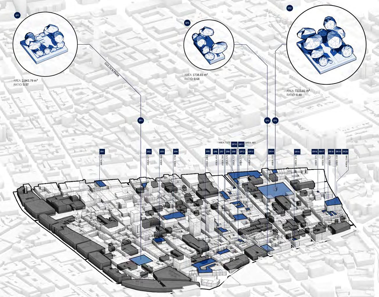 As the imbalance between unbuilt and built environments grows, this fragmentation of natural landscapes echo repercussions to different levels of urban and natural development. Exacerbated by human activity, this environmental degradation and loss of biodiversity has led to drastic decreases in thermoregulation of the urban context and carbon capture. However, it is crucial to revive this continuous exchange of matter and energy facilitated through the spatial relationship between the built and unbuilt- as Jorgensen and Tylecote identify as ‘urban interstices.’
