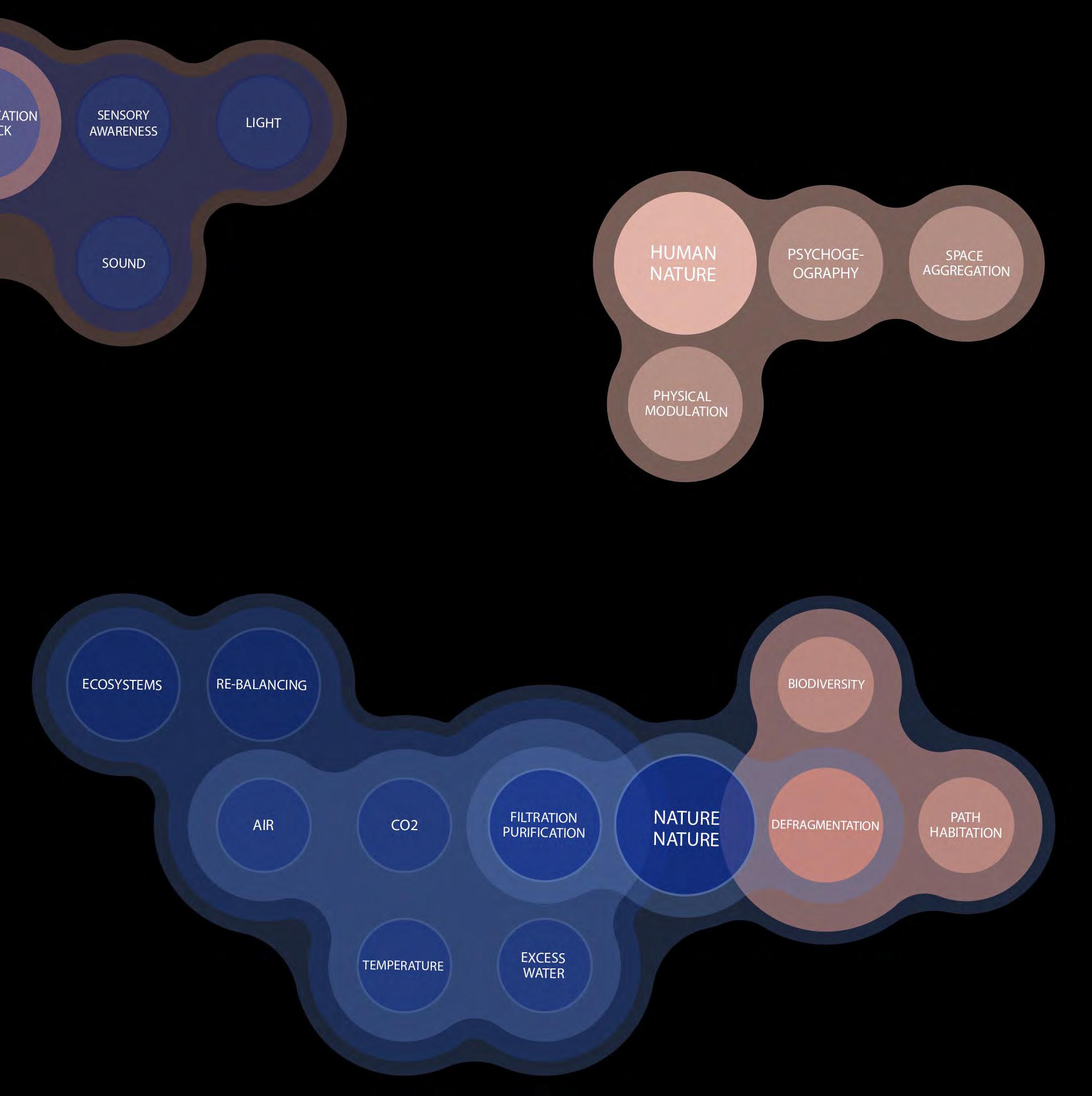 The domain chapter concentrates on the interconnectivity of crucial subjects for comprehending how exactly ecological deterioration, which disrupts urban metabolism, can result in cumulative and far-reaching consequences. The ecological fragmentation and resulting isolated natural landscapes within the urban context curb its ability to thermoregulate the heat island effect, temperature rise and extinction of species. In order to understand the domain through which these problems can be mitigated, public and interstitial spaces will be researched to create a constant green network to reconnect back London’s Metropolitan Green Belt.