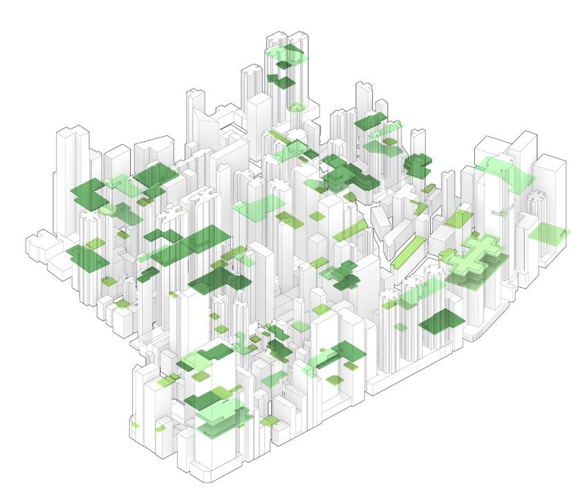 An in-depth evaluation of the existing structure of individual buildings may have increased the limitations of the open space distribution. Techniques to increase the structural strength of proposed spaces could be explored to achieve larger spans or greater vegetation loads.