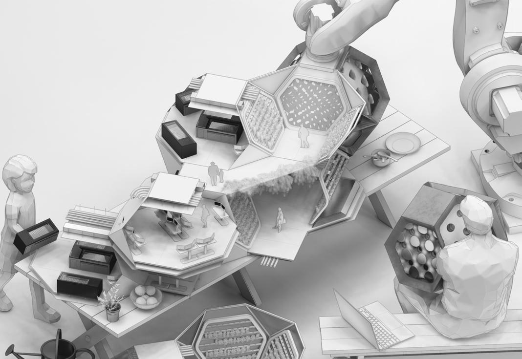 [Fig. 132] (Right) Interior Perspective from an Agriculture Unit
