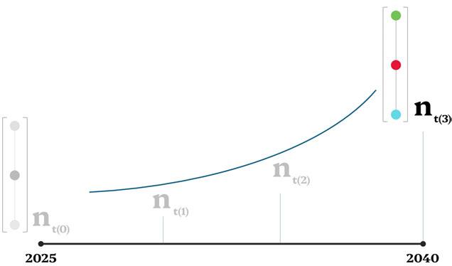 Additionally, although the spatial demand approximation model draws from the data consumption patterns of its specific contextual members (users) in a temporal sequence from 2025 (t(0)) to 2040 (t(3)), the combination of land and infrastructure availability with these usage patterns informs the predictive analysis model. This model approximates the spatial qualities and quantities of both technical and social programmatic requirements, which in turn inform the developed assembly interpreter pipeline. The framework holds greater potential to enhance user engagement by enabling participation at multiple stages of the pipeline, thus supporting a multi-stakeholder decision-making scheme that is