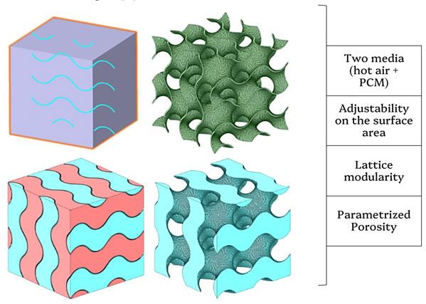 [Fig. 54] TPMS surface ability to subdivide a volume into two equal parts (retrieved from https://blog.fastwayengineering.com/3d-printed-gyroidheat-exchanger-cfd)