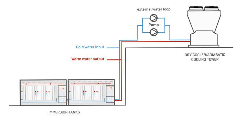[Fig. 21] Immersion cooling infrastructure example without heat reuse (retrieved from https://pictures.2cr.si/Images_site_web_Odoo/Partners/ Submer/2CRSi_Submer_Immersion%20cooling%20EN_April_2023.pdf).