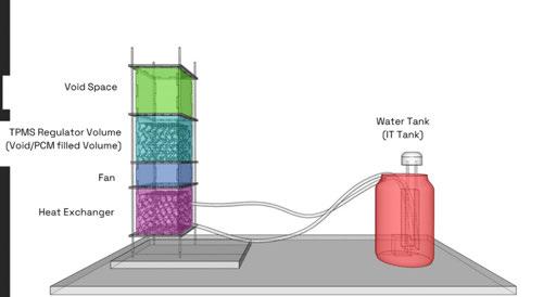 Developing a TPMS-based PCM-infilled panel system has proven to be a suitable approach, as demonstrated by the proof-of-concept material experiment with prototyped versions for continuous, passive, and responsive thermal regulation. However, the material system proof-of-concept model was tested only for several cycles of energy transfers; assessments of maintenance requirements for such materials could additionally deliver practical input in refining fabrication methodologies. Approximating the behavior of PCM materials necessitates complex and highly recursive mathematical modeling that often omits many factors. Therefore, the panel configurator pipeline requires an additional step to better assess performance and determine a “better” outcome. In this context, such improvement could only be achieved through numerous 1:1 prototypes, assembling a relevant dataset, and applying predictive machine learning methodologies. Developed material systems— both the TPMS shell fabrication at a 1:1 scale and its effect on the PCM infill— could provide a missing perspective on the longer-term implications of the proposed system behavior, enabling the framework to become more robust.
