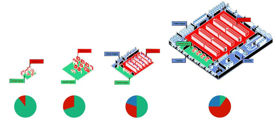 1This advancement enabled a global shift towards new ways to compute, store, and transfer information faster than ever. To manage the increasing resource and information traffic, new typologies emerged in our built environments such as data centres.