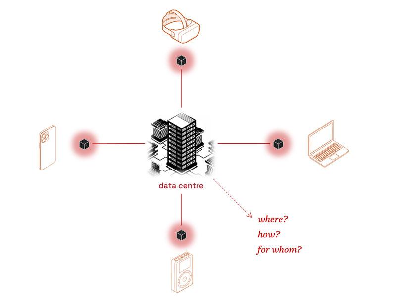 [Fig. 10] The continuous journey of Data (redrawn from thesis DataHub: Designing Data Centers for People and Cities, Harvard GSD) (ReIllustrated by the authors)