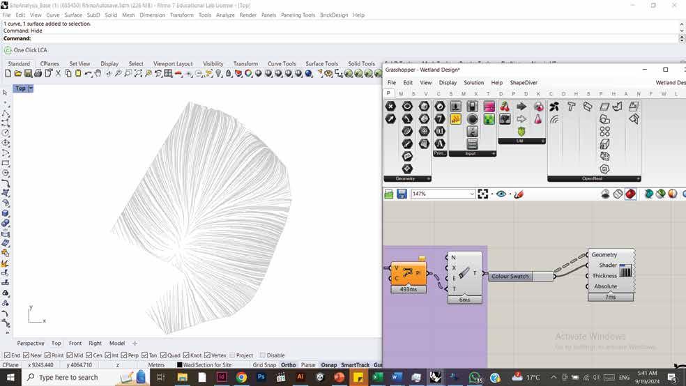 stabilize the embankments of Wadi Gaza and house the wastewater treatment and soil remediation processes. Low-tech construction methods utilizing soil and clay as a material system intend to increase community involvement and decrease dependency on externally sourced building materials. The thesis challenges the role of architecture as a tool for rehabilitation by developing a model framework for establishing a network of connections between the structure, the environment, and the users, which will guide the design process for developing a new public building typology.