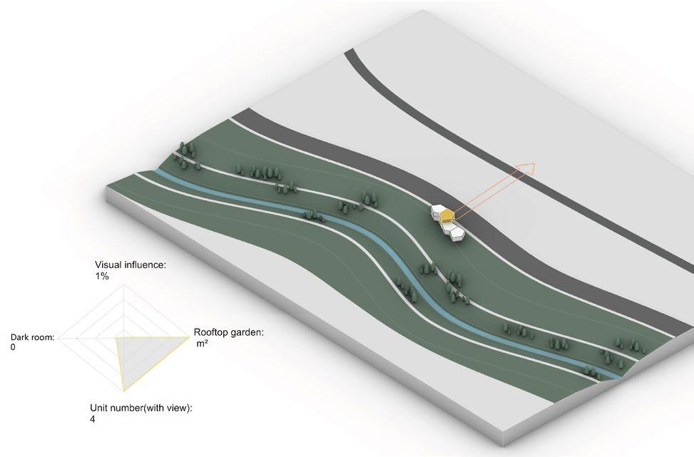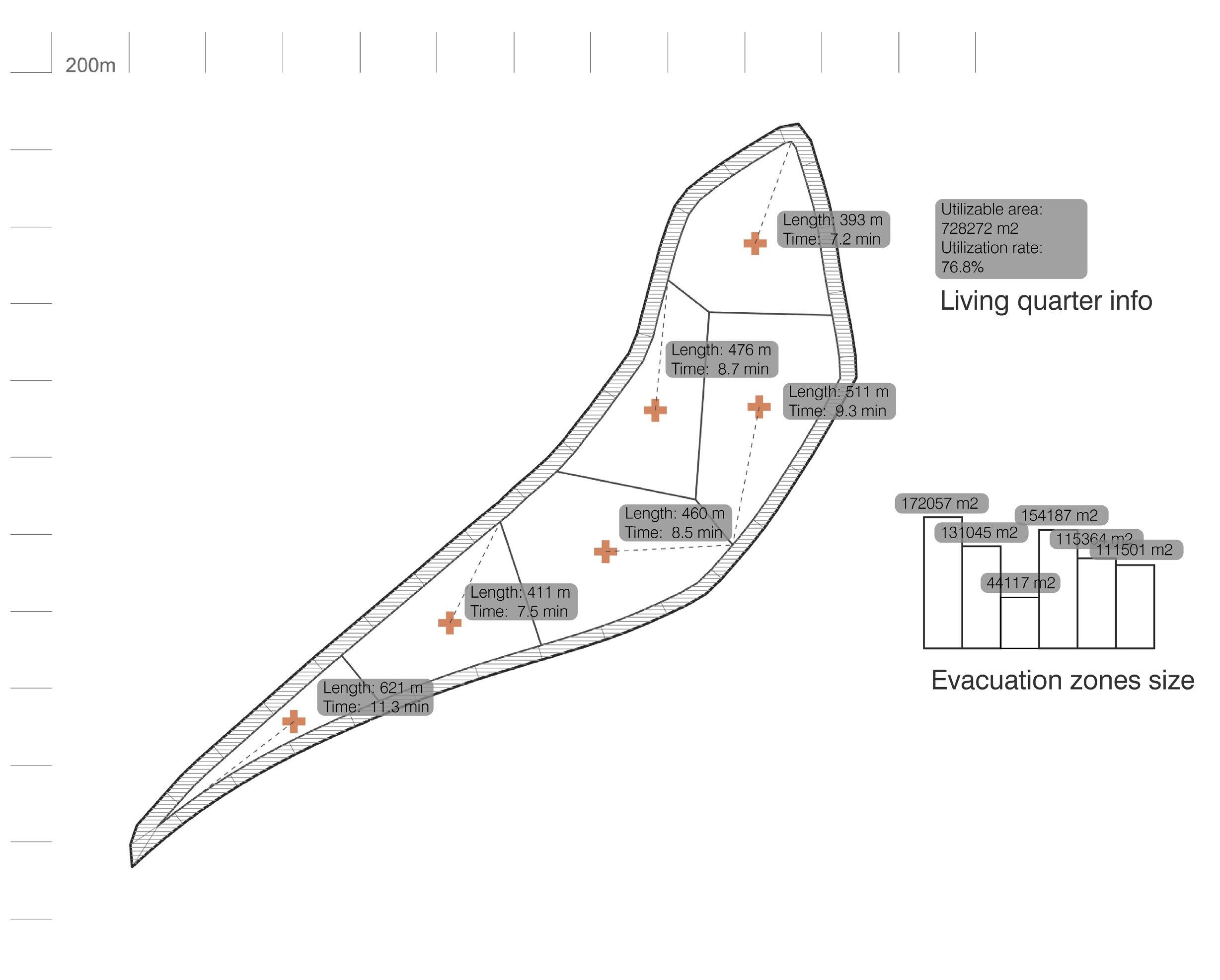 The overall network that has been developed around the new land established alongside tertiary channels seems to function aptly in terms of vehicular and pedestrian network and establishes a clear evacuation network for the people living in and around the chosen site developed. Yet, this strategy requires to be developed in line with the context of Tokyo and the city's needs and architecture.
