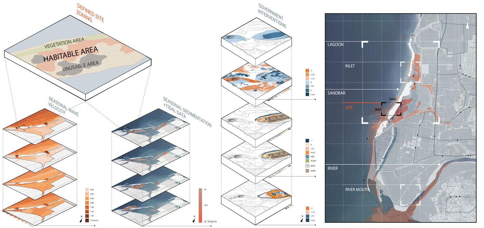 The scope of the dissertation is simultaneously specific and transferable. It grounds itself in Qigu Lagoon as a case study, engaging its geomorphic history, climatic conditions, ecological networks, and socio-economic dynamics. Yet the design methods of circular material practices, interlocking assembly, sediment-guided modelling, extend beyond this single site. They contribute to a broader discourse on how architecture can mediate between ecological processes and human livelihoods in fragile coastal territories.