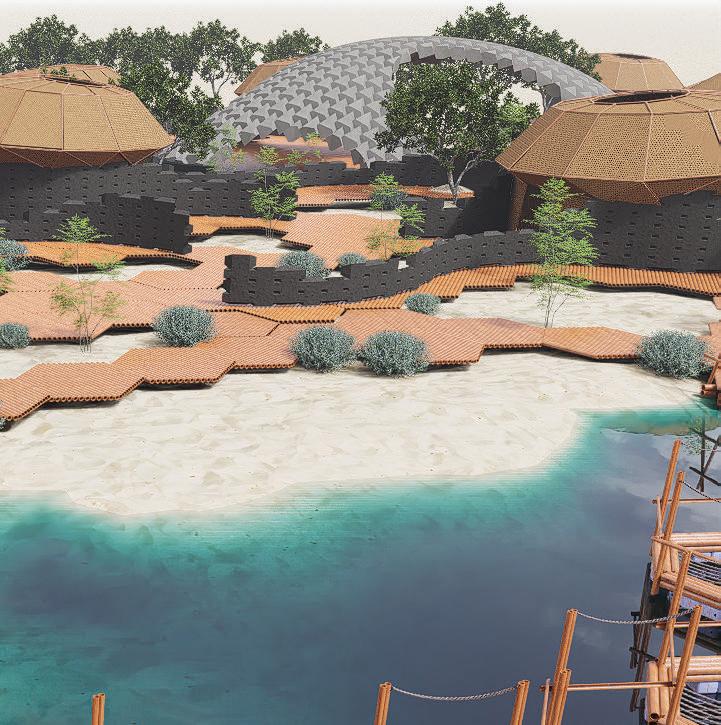This research, therefore, should be seen not as a resolved solution but as a platform for discussion— an architecture that deliberately remains incomplete so that it can continue to evolve with the cycles of land, water, and life it seeks to inhabit.This architecture is a proposition in process, a sca old for testing how ecology and economy might be interwoven on shifting ground.