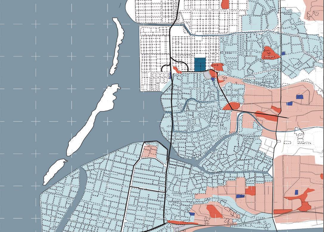 The overall urban plan for the sandbar is designed to accommodate approximately 500 residents. However, since the sandbar is currently shifting, it is not feasible to construct housing for all 500 residents at once. Therefore, the plan envisions stabilizing the sandbar’s sediment and allowing the coastline to evolve naturally under the influence of the hatchery platforms. In response to these changes, the urban development is organized into four sequential phases, enabling the settlement to grow progressively.