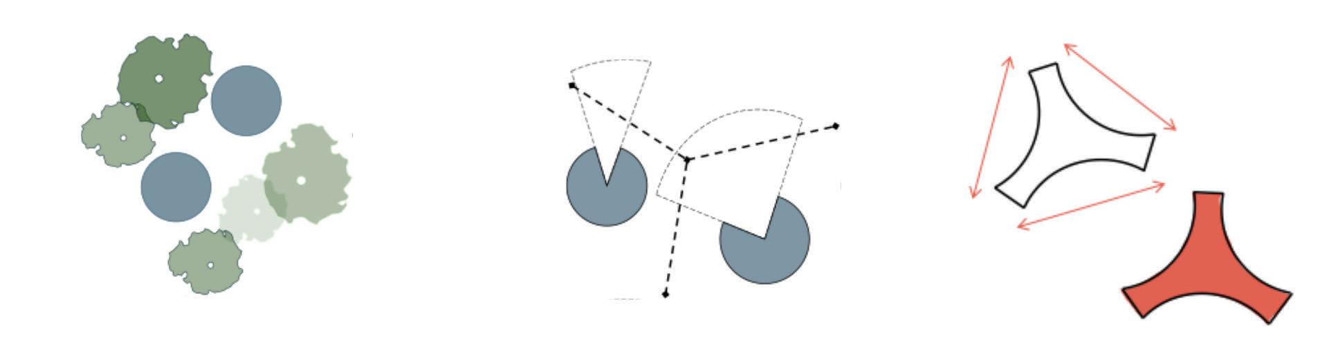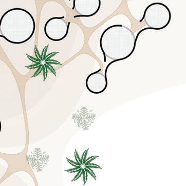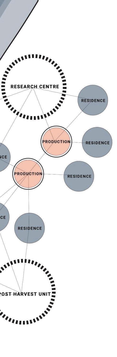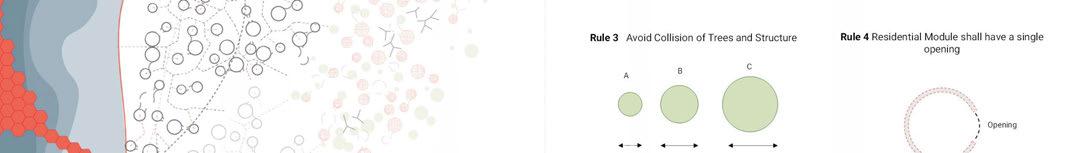 Four key objectives frame this exploration: first, to increase the number of pathways between residences, ensuring circulation is smooth, second, to create centralized shared spaces that anchor community activity and support farming, gathering, or storage; third, to improve overall connectivity by linking di erent clusters into a coherent network rather than isolated pockets; and fourth, to position residential modules closer together, reducing infrastructural footprint.