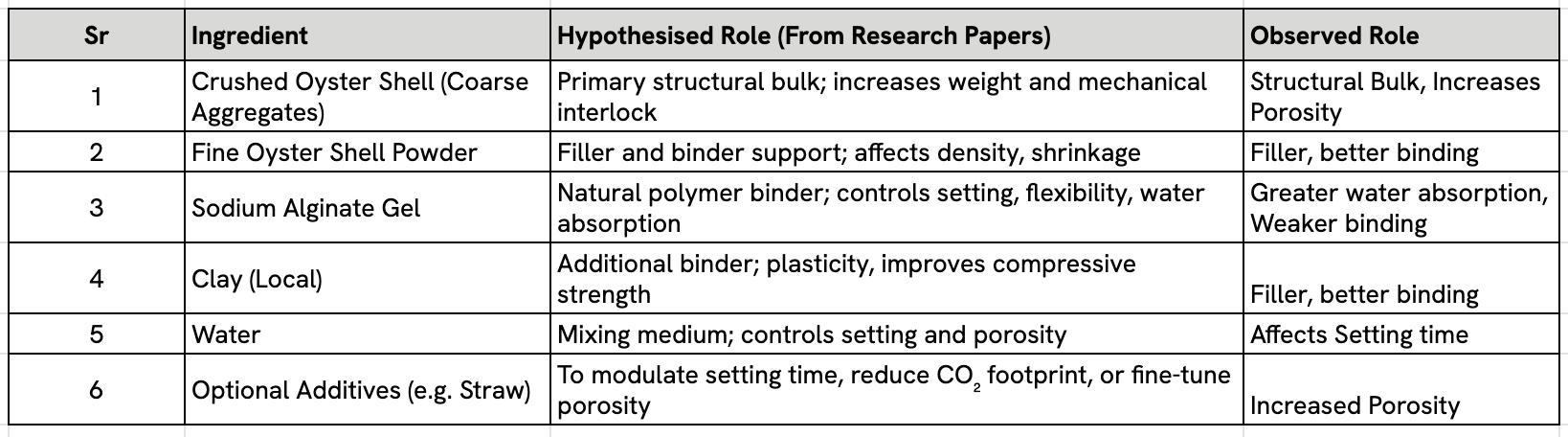 but require further research into durability under saltwater, storms, and cycles of dismantling and reuse. Similarly, while the shells’ ecological role is foregrounded, their long-term structural viability under compression, erosion, and water flow is still speculative.