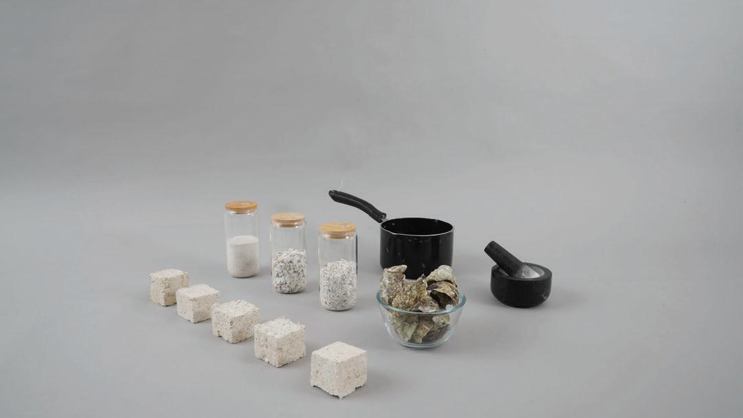 The inquiry begins with the oyster shell itself: nearly two tonnes produced annually, half discarded as waste. By crushing, recombining, and casting shells we developed a material matrix based on module location cast in reusable formwork, closing the loop between aquaculture and construction.