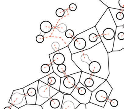 Pathways are generated based on a Voronoi diagram derived from the positions of the residential units, and additional access paths are connected from the openings of the units to the nearest pathway. The fitness criteria are similarly consistent with those applied in the Spatial Distribution phase, aiming to maximize pathways between residences while promoting centralized shared spaces, maximize connectivity, and minimize the distance between residential modules.