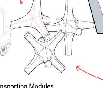 Deployed o shore, modules behave through jamming, aggregating to redirect sediment. Onshore, modules shift into topological interlocking, forming structures for processing, habitation, and seasonal life. The project thus traces a conceptual arc of emergent interlocking systems: from aleatory to deterministic, from uncontrolled behaviour to controlled architecture.