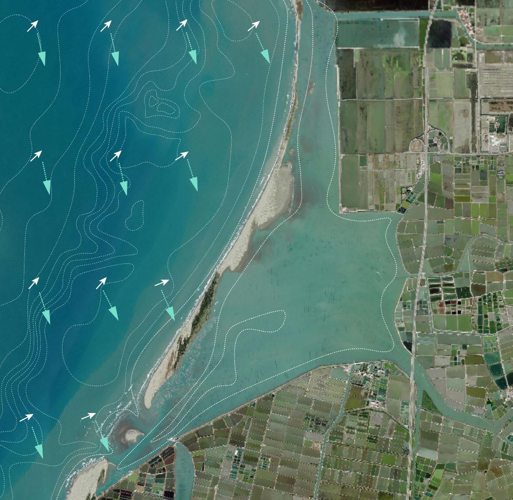 The case of Qigu Lagoon in southwest Taiwan highlights this dilemma. Once covering nearly 150 square kilometres, the lagoon has contracted to just 15 square kilometres as sandbars migrate inland and sedimentation accelerates. This geomorphic transformation has immediate consequences: over 15,000 oyster farmers depend on the lagoon, yet both their livelihoods and the ecological balance of the system are increasingly at risk. Government responses—dredging channels, deploying geotubes, and constructing breakwaters, reflect the conventional paradigm of resisting natural forces through engineering control. These strategies o er short-term relief but falter in the face of dynamic morphodynamic processes, often leading to erosion elsewhere or further destabilising sandbar systems. At the same time, aquaculture infrastructure is developed in isolation from these protective measures, resulting in duplicated e orts and vulnerabilities.