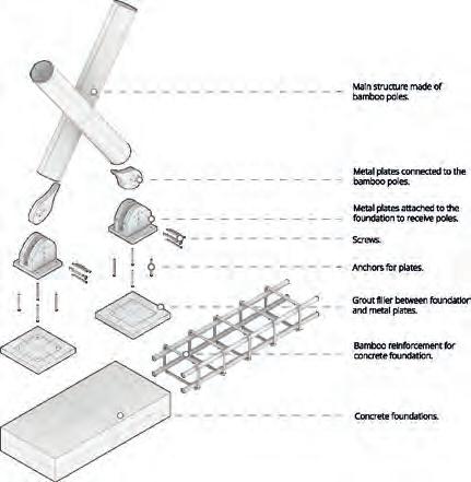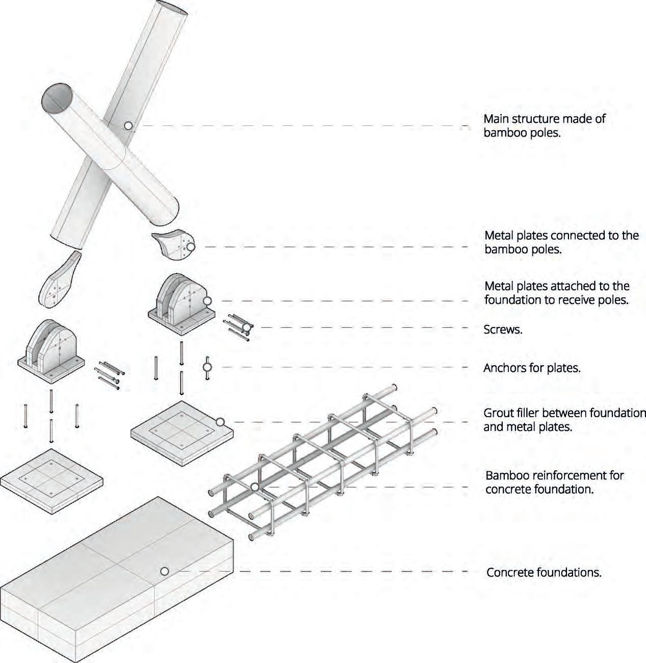 Moreresearchontheremovableand permanentskinpanelsneedstobeundertakenintheMArchstage.Additionally,morestructuredetailsandanassemblymanualshouldbedevelopedto makepossibleaparticipatoryconstructionprocessthatengagesthecommunitieswiththeproject.Moreresearchand developmentwillbecarriedoutregardingthecurvedbambooworkshoptodevelopacheap,fastandeasywayto achievethecurvesproposedinthedigitalexperiments.Moreover,allthein-