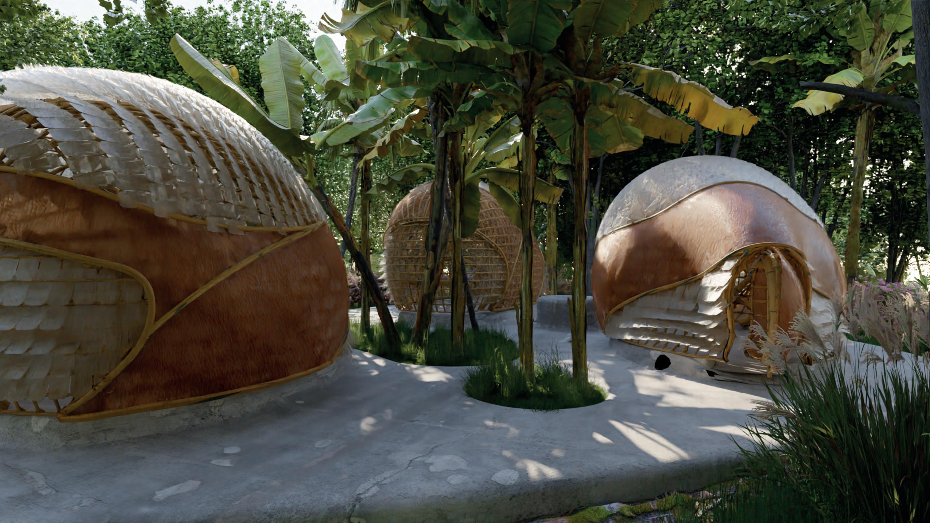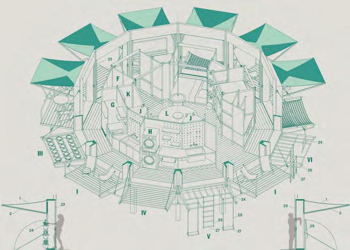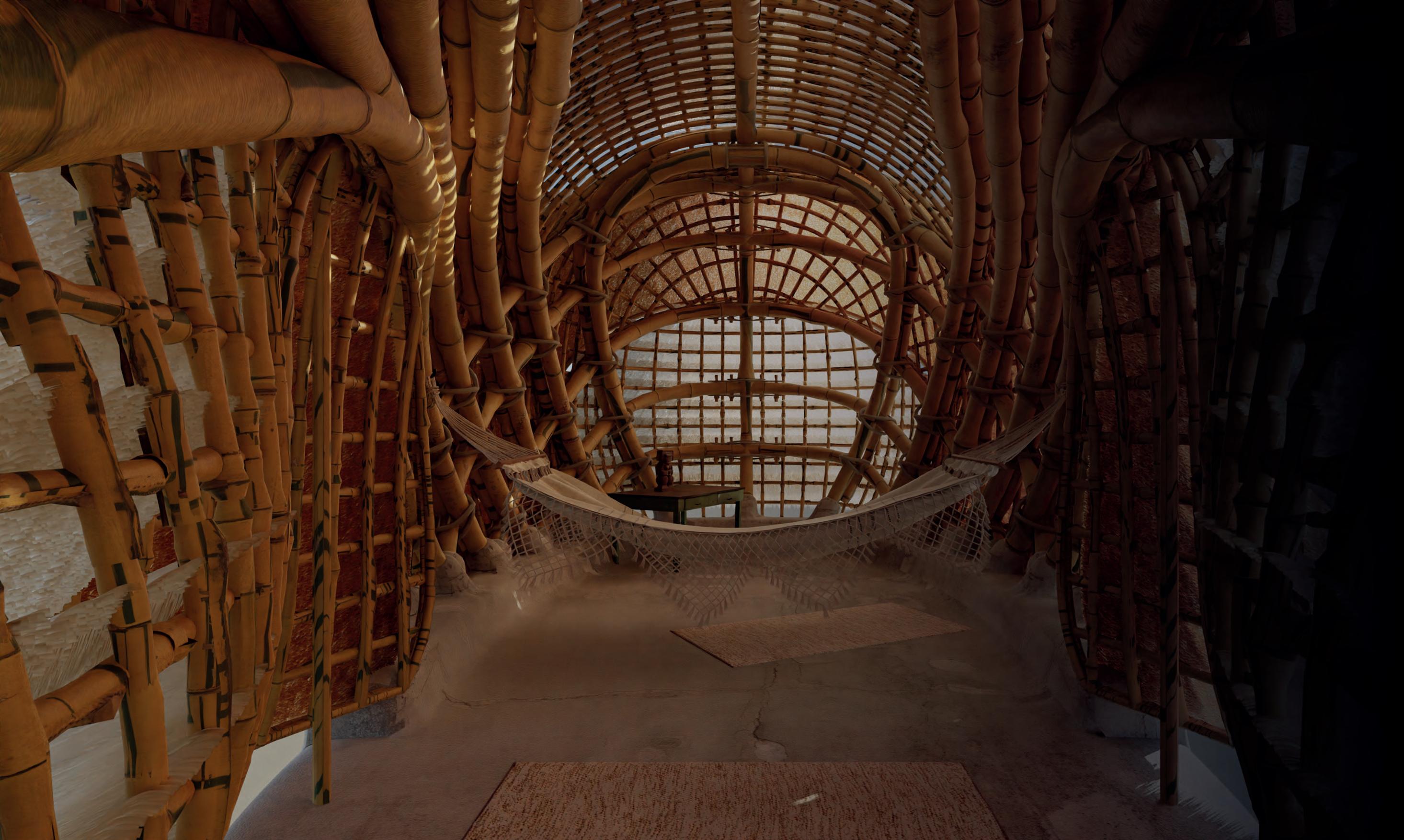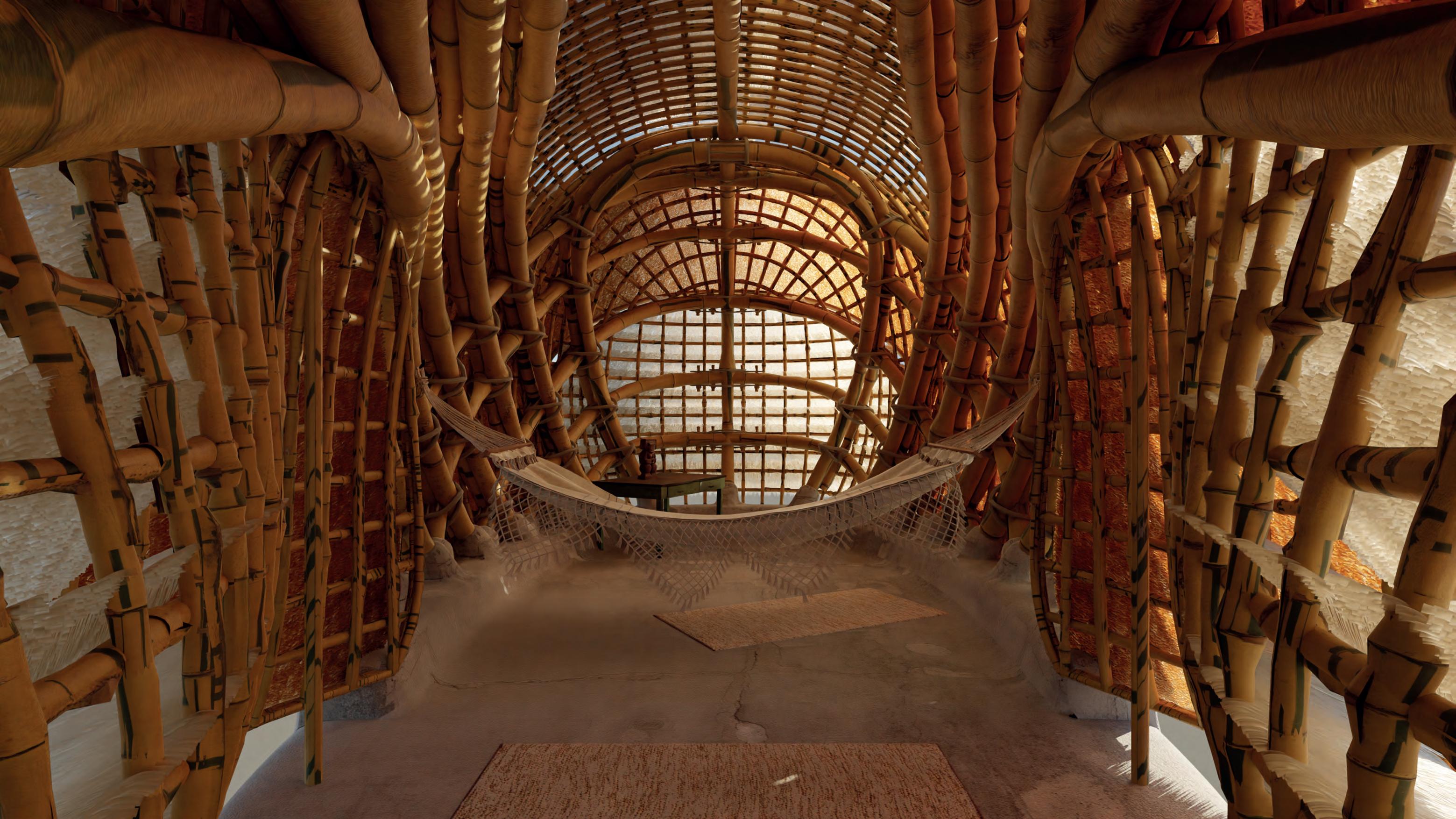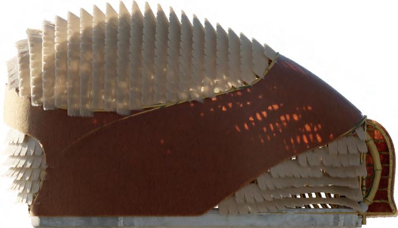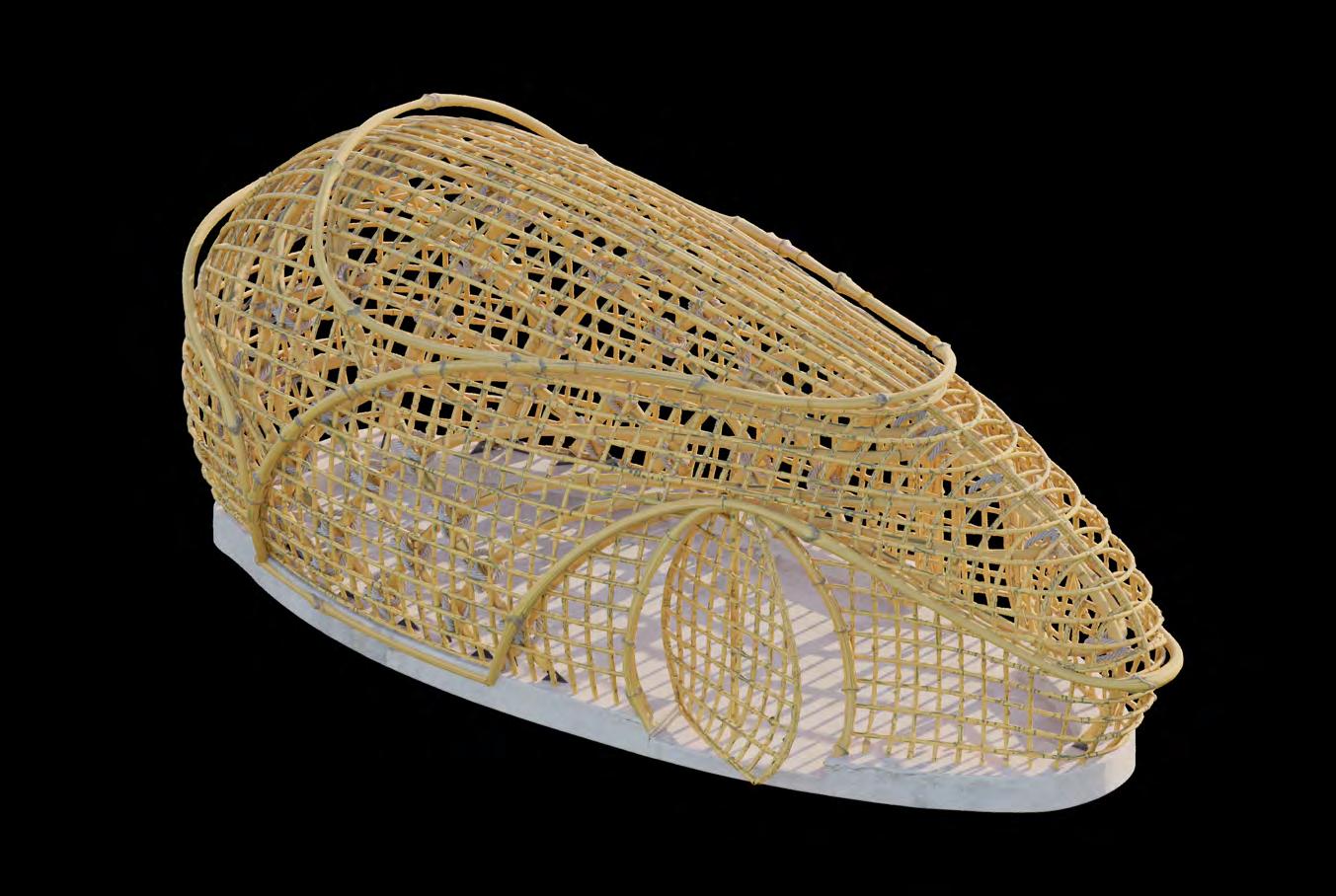 Atamorphologicalscale,theresearch developsaninnovativedwellingsystem fortheMayanswithamethodologythat integrateswind-drivenform-findingprocessesandmaterialexperimentationsby exploringlocalbambooandnatural fibres’structuralproperties.Thisdesign isinformedbyabstractingastudyofthe indigenouslifestyleandarchitecture.It proposesthedevelopmentofahurricaneresilient,thermalregulatingefficient,andcommunity-basedauto-con-