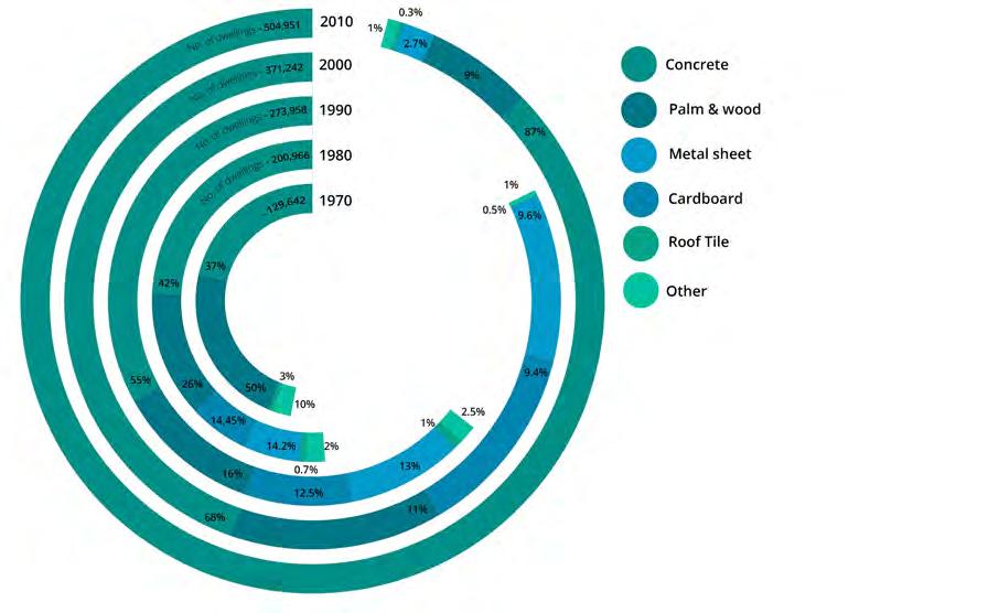 graph shows how over the last decades, Mayan communities began replacing the traditional canopy system of palm & wood with concrete and other materials.