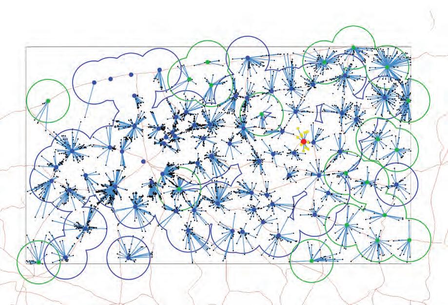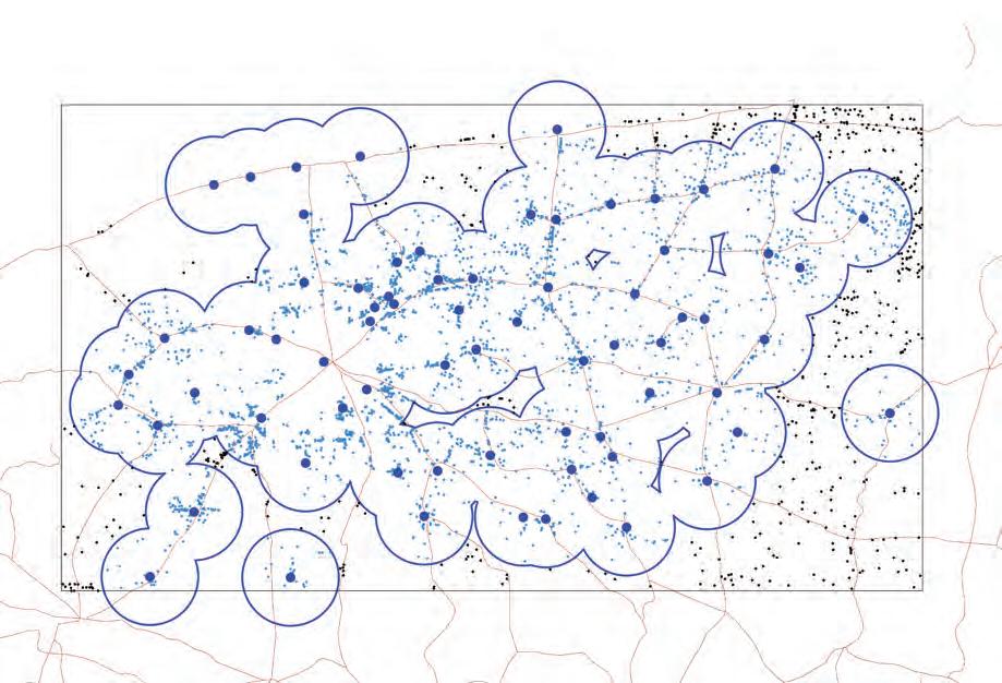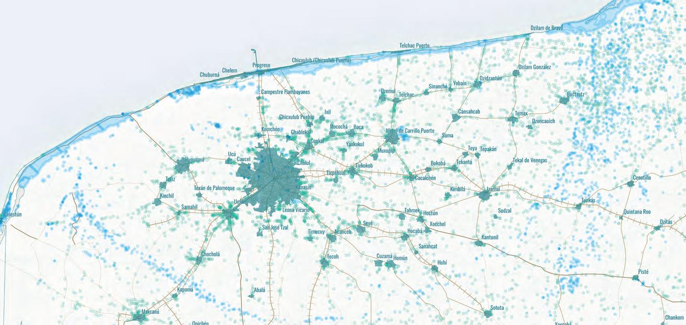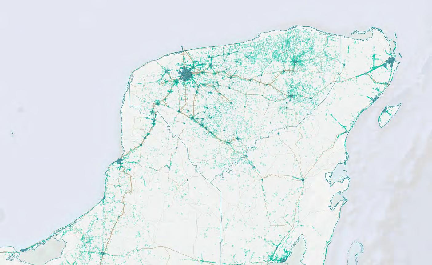 Thedevelopmentofthisnewevacuation networkbeganbyidentifyingMayancommunitiesonthestate’snortherncoastand areaswithahighprobabilityofbecoming newdesignatedsafezones.Thesecommunitiesweresortedbya1-hourwalkradius distance(Figure154).Analgorithmwascreatedtoidentifywherenewsafezonecommunitieswouldbeneededtoprovideample coverageofthestudyzone(Figure155)and toincorporatethesenewsettlementsinto theexistingroadnetwork.(Figure156)Lastly, aclusteringalgorithmwasusedtoidentify whichcommunitiesshouldevacuateto whichsafezone.Furtherdevelopmentfor thisnetworkisplannedduringtheMarch
