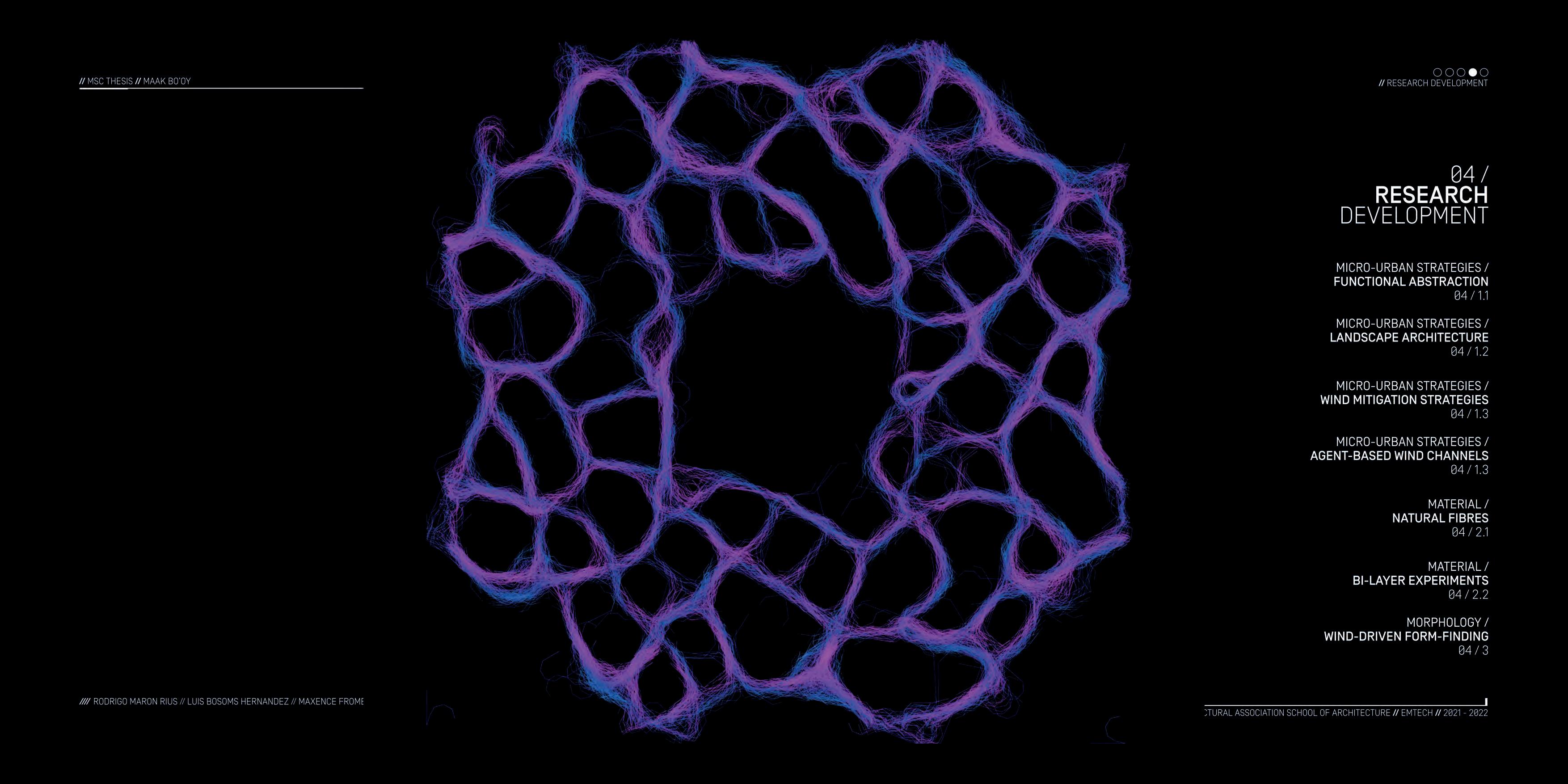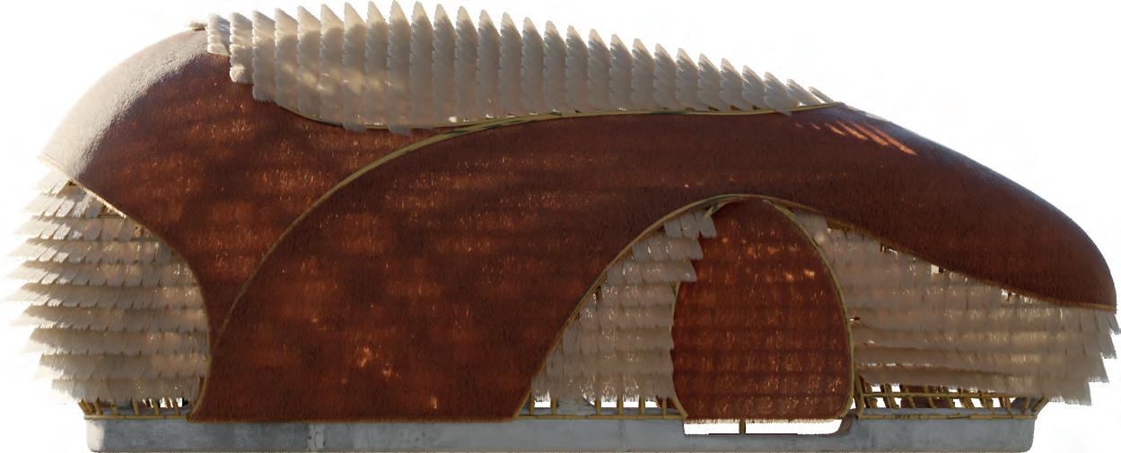 Thisprojectwaschallenginginmany ways.Workinginamultiscalarapproach unveiledseveraltopicstoreflecton.Climatechangeincreasesthedamage causedbyhurricanesintheYucatanPeninsulaeachyear,aswellasextinguishing localspeciesusedforconstructionby theMayanpeople,makingithardertorebuildthedamagesafterastorm.This thesisextensivelyresearchestheadequatesolutiontosuchissues,encompassingwind-drivenform-finding,materialresearch,digitalandphysical experiments,constructiontechniques, generativelandscapearchitectureand micro-urbandesign.