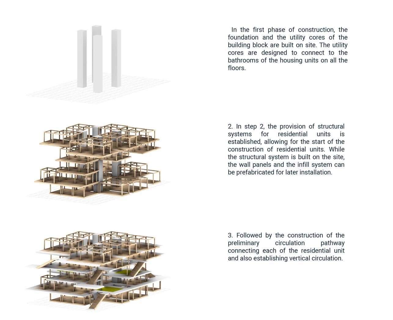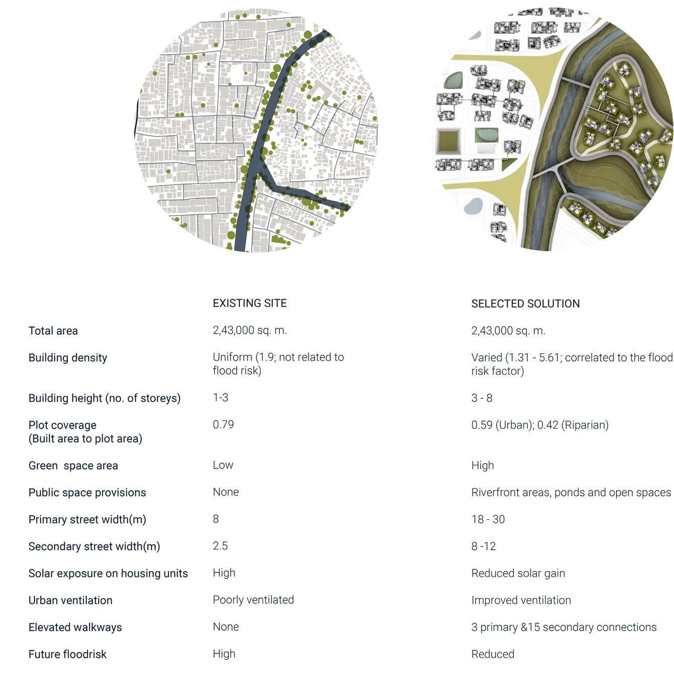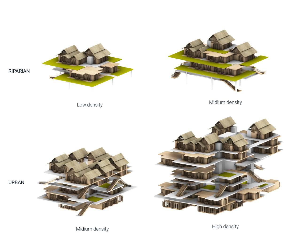 To tackle the inevitably interlinked problem of urban floods, unplanned urbanisation and informal settlement, this research takes a holistic approach in developing integrated urban and architectural scale strategies. The research explored ways to incorporate active flood mitigation strategies in urban zoning while positively influencing the urban fabric. By abstracting the principles from vernacular practices, the research develops an architectural system in which an open building framework was explored to achieve the balance of rigorous planning and informality of community involvement through self-build.