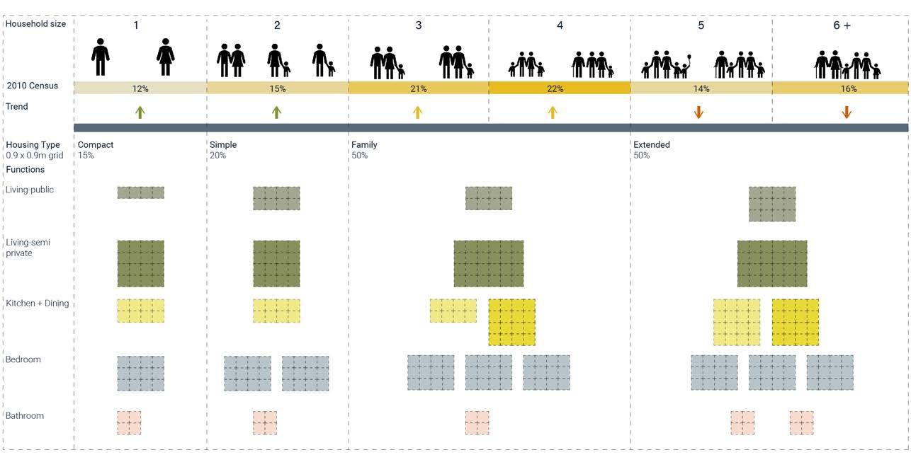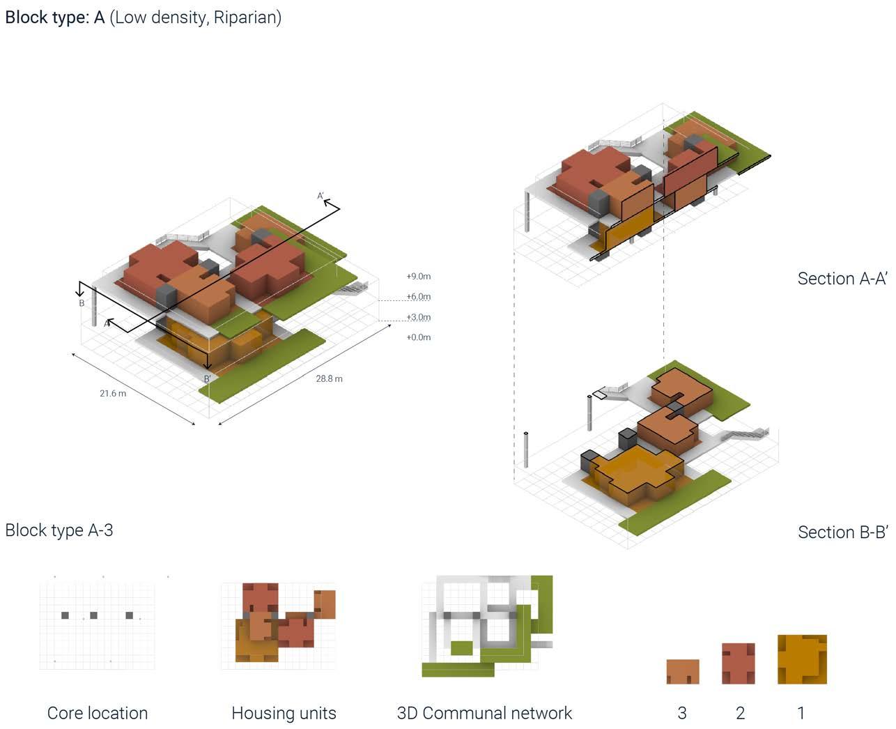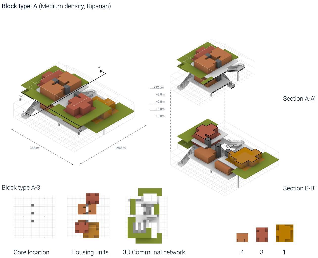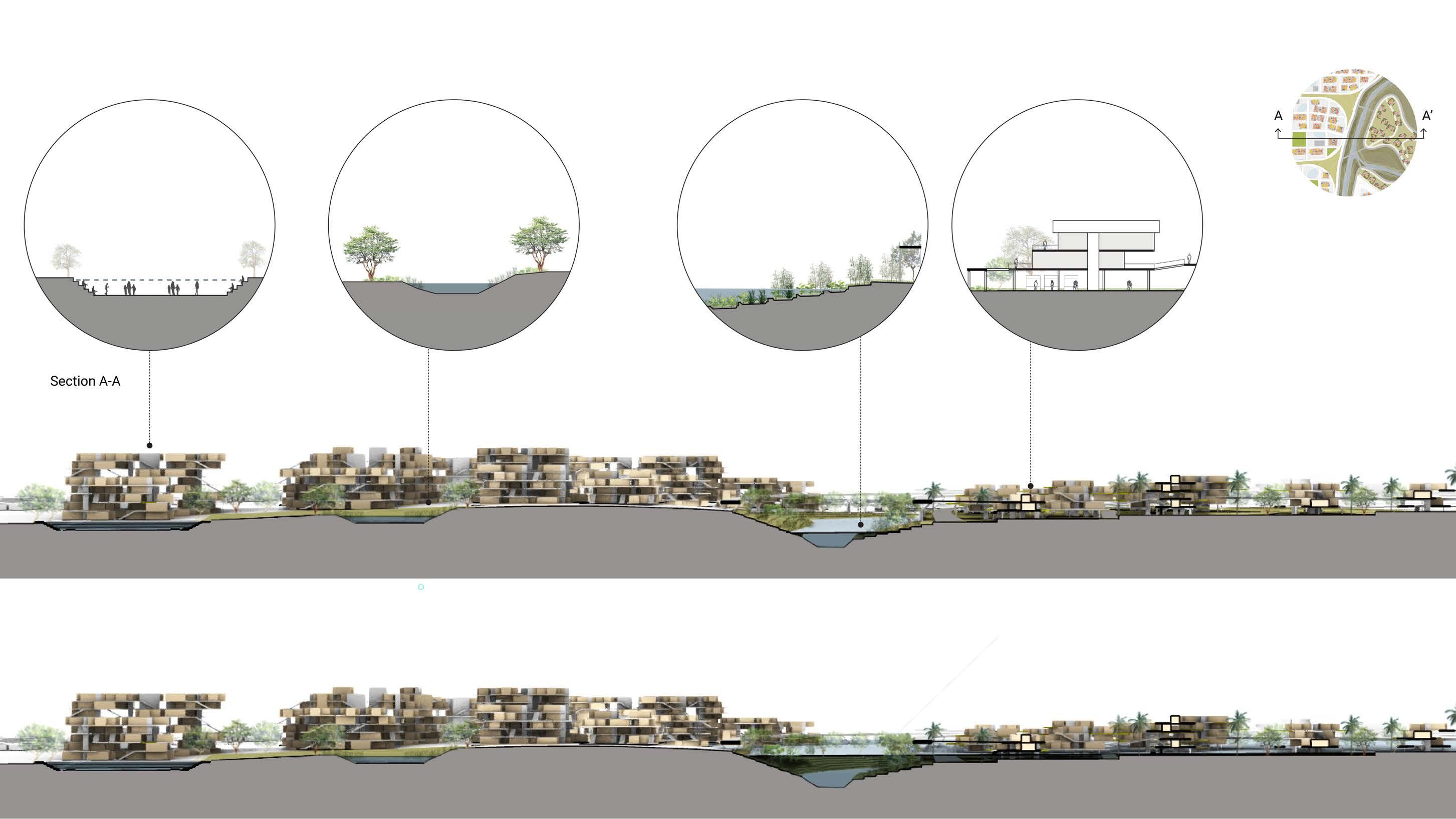 For the provision of housing, the project aimed to evolve vernacular typologies to suit the needs of modern households and future demographic growth. The architectural system pursues a framework that allows for spatial flexibility with emphasis on communal spaces, which is often lost in the existing government housing schemes. Bringing the urban scale and architectural scale solutions together, the resulting design aims to improve the neighbourhood’s resilience to flooding, at the same time taking into consideration the needs of its inhabitants.