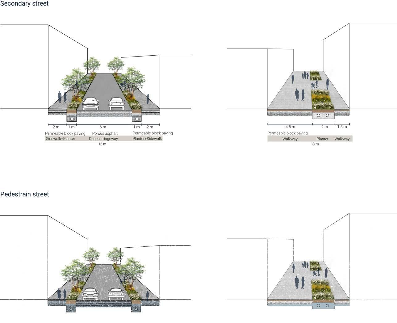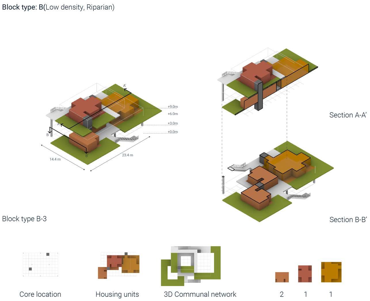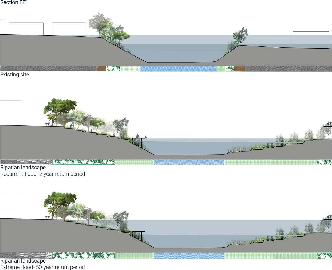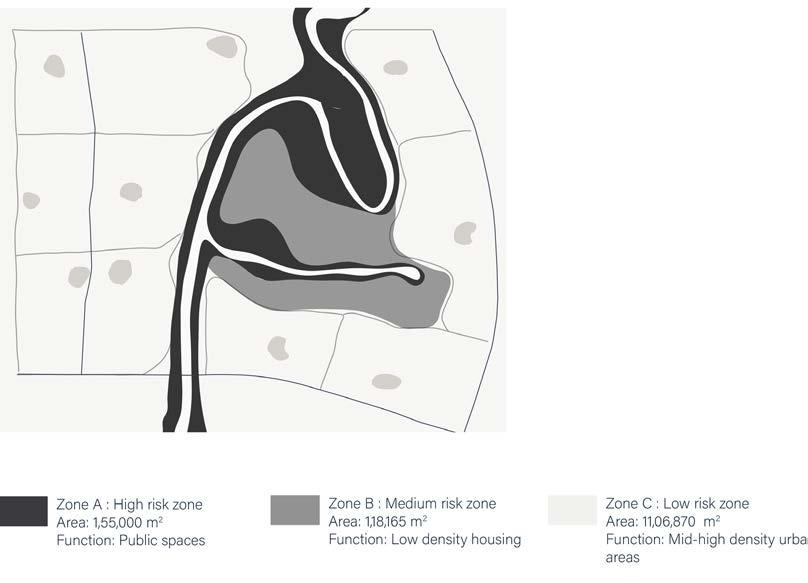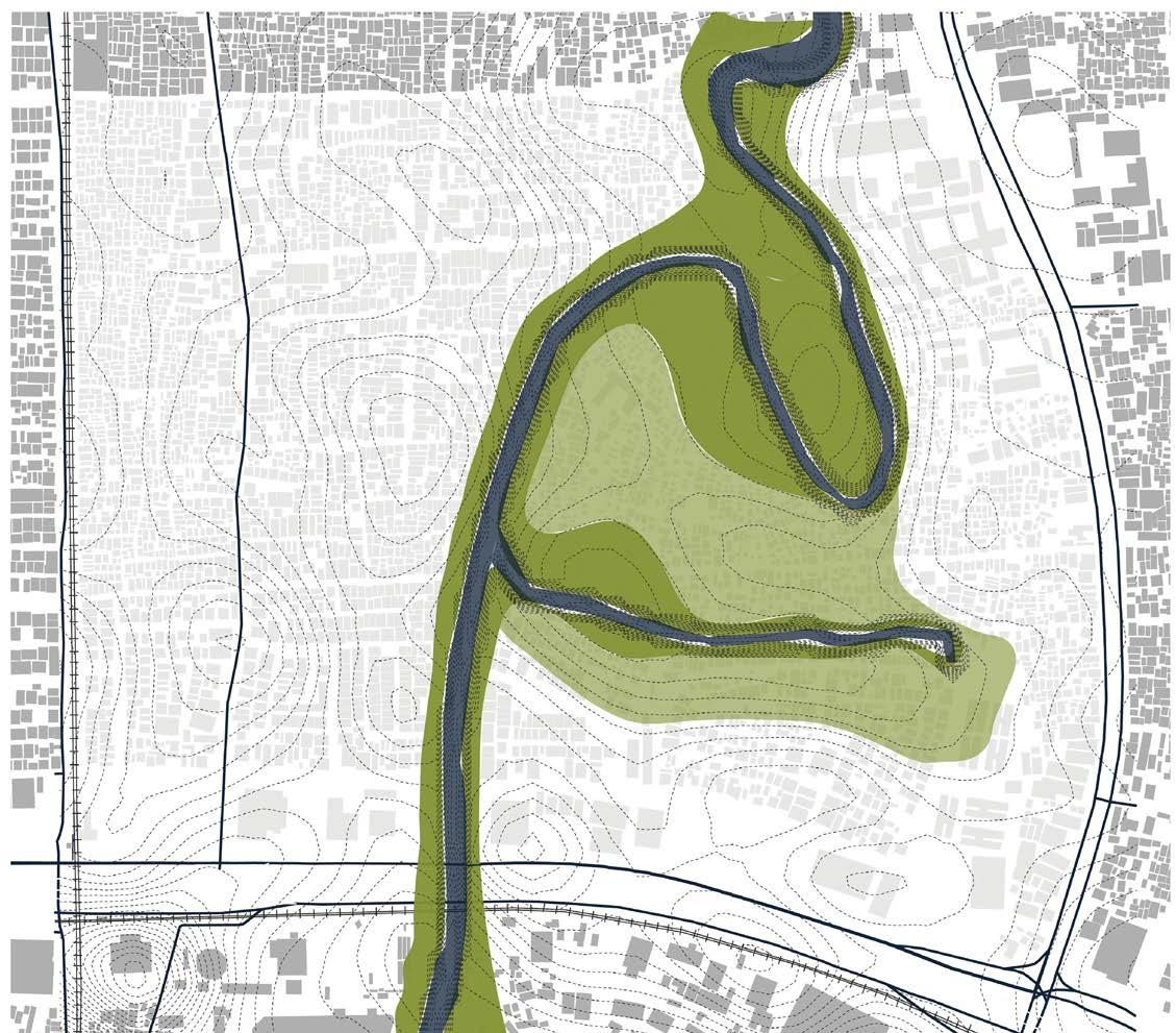 At an urban scale, flood control strategies were distributed based on the river dynamics and nature of the floodplain. These infrastructures including the new absorptive landscapes were taken as the skeleton for urban zoning so that the local urban fabric could respond to different flood control strategies.