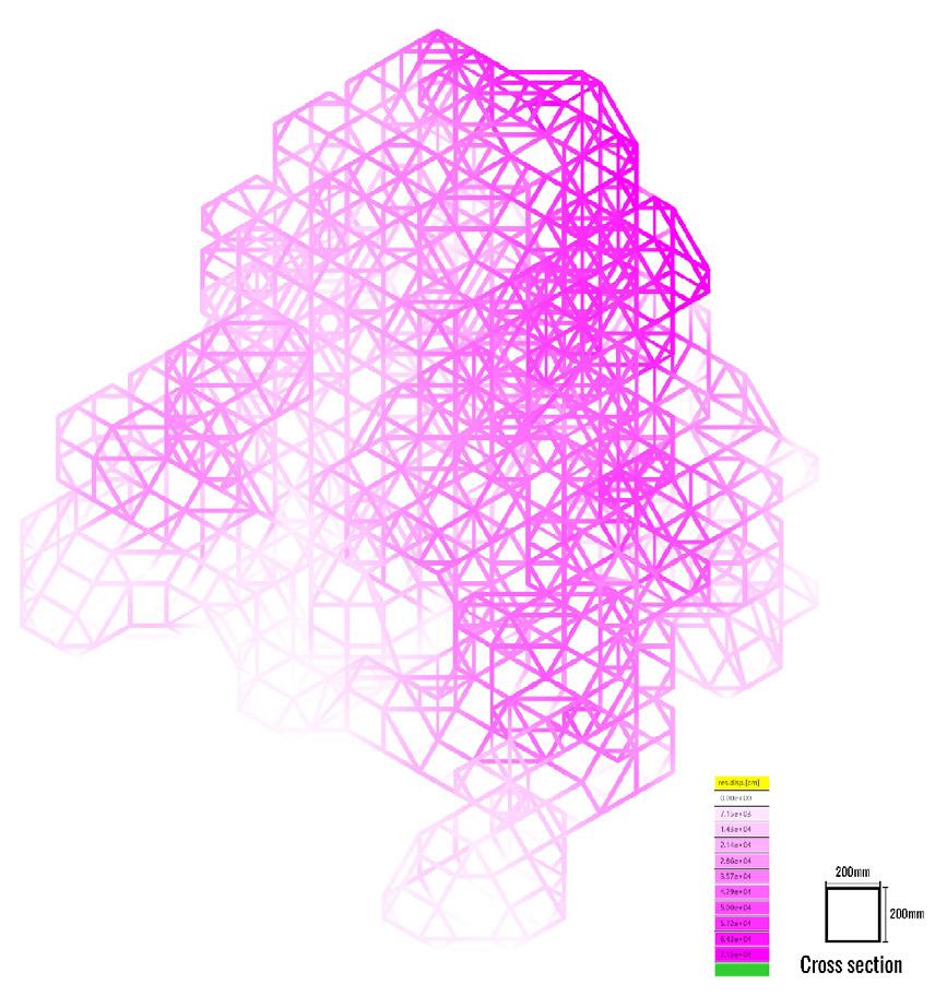 Collectively these processes in a sequential process enable a structurally efficient design that opens the possibility to an adaptive system within the morphology while bridging both cultural and contemporary paradigms.