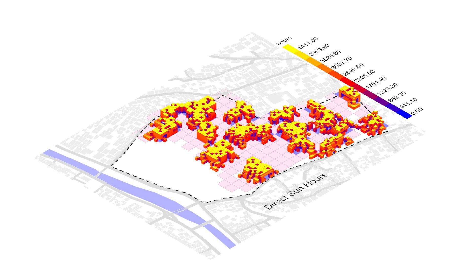 The selected modules are strategically placed on high thermal surfaces of the overall building morphology
