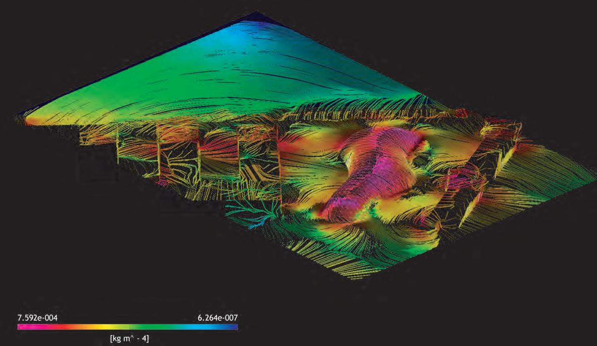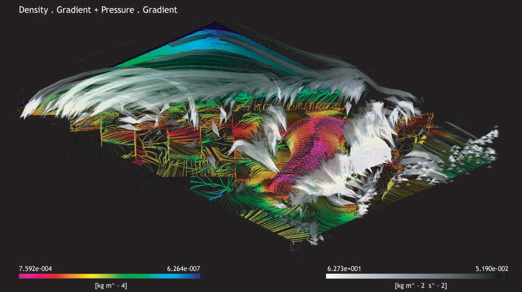 Information from analog models is extrapolated into the digital realm, where several test are run in order to corroborate information. The output from this process is strategically layered and combined in order to define the final physical geometry.